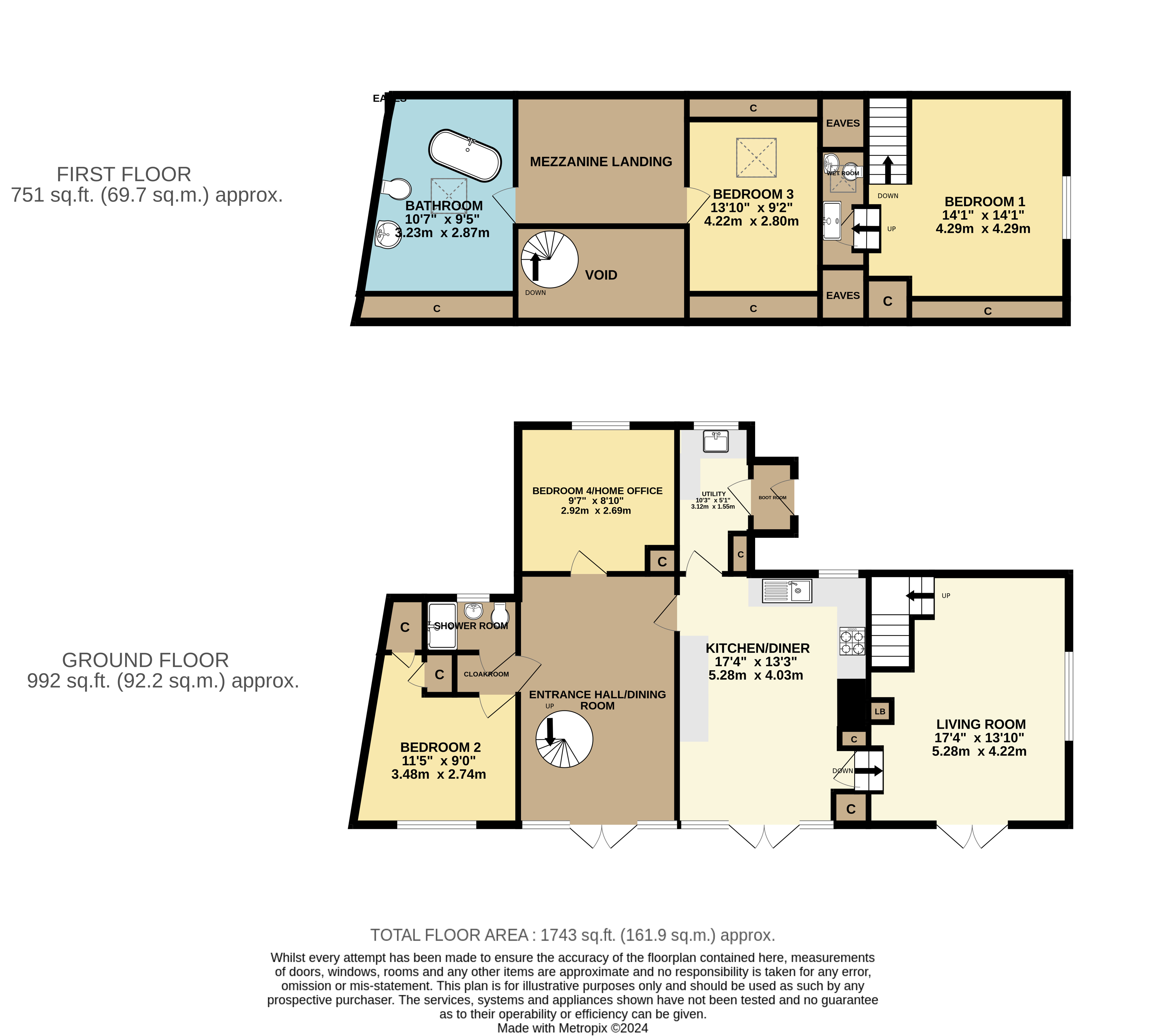 One staircase from the living room leads up to the main bedroom with its own wet room. From the large mezzanine landing, there is access to a further bedroom and larger family bathroom.