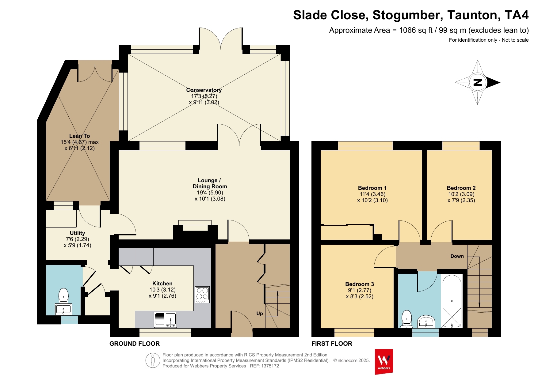 The family bathroom includes a panelled bath with wall-mounted shower, pedestal wash basin with splashback tiling, low-level WC, ceiling extractor fan, and opaque double glazed window.