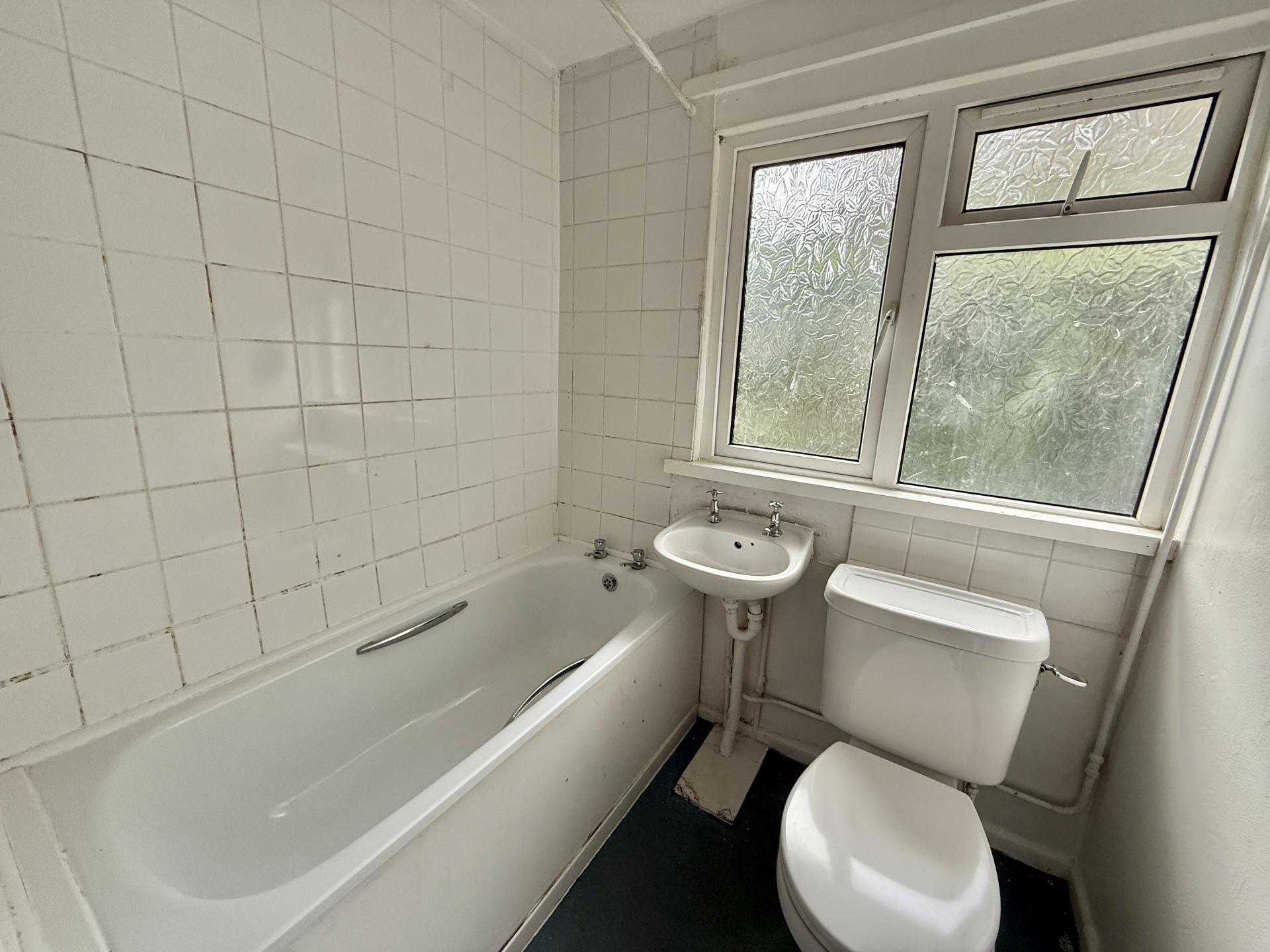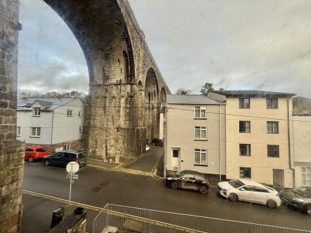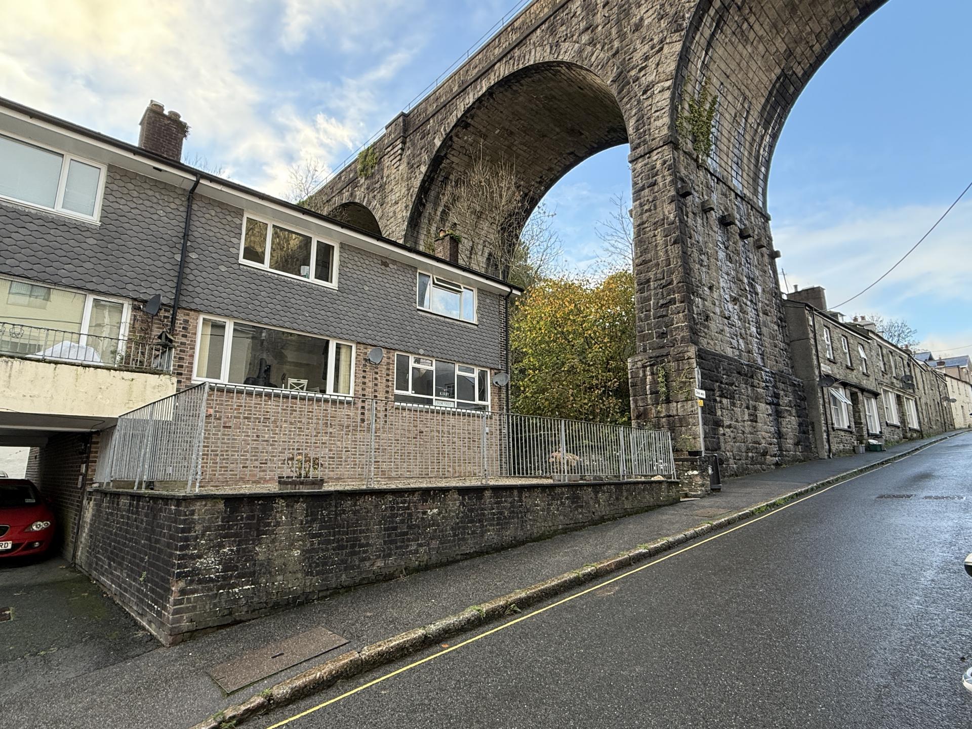 A freehold, two bedroom end terrace property conveniently located in Tavistock town centre. Situated in Madge Court on King Street, the property is in need of renovation throughout and would suit an investment buyer/developer. You enter the property via the back and into an inner hallway with storage under the stairs. To the left is a kitchen with some integrated appliances and a wall mounted gas boiler. At the front is a spacious sitting/dining room with a large picture window looking out to the viaduct. Upstairs are two double bedrooms and a bathroom with white suite.