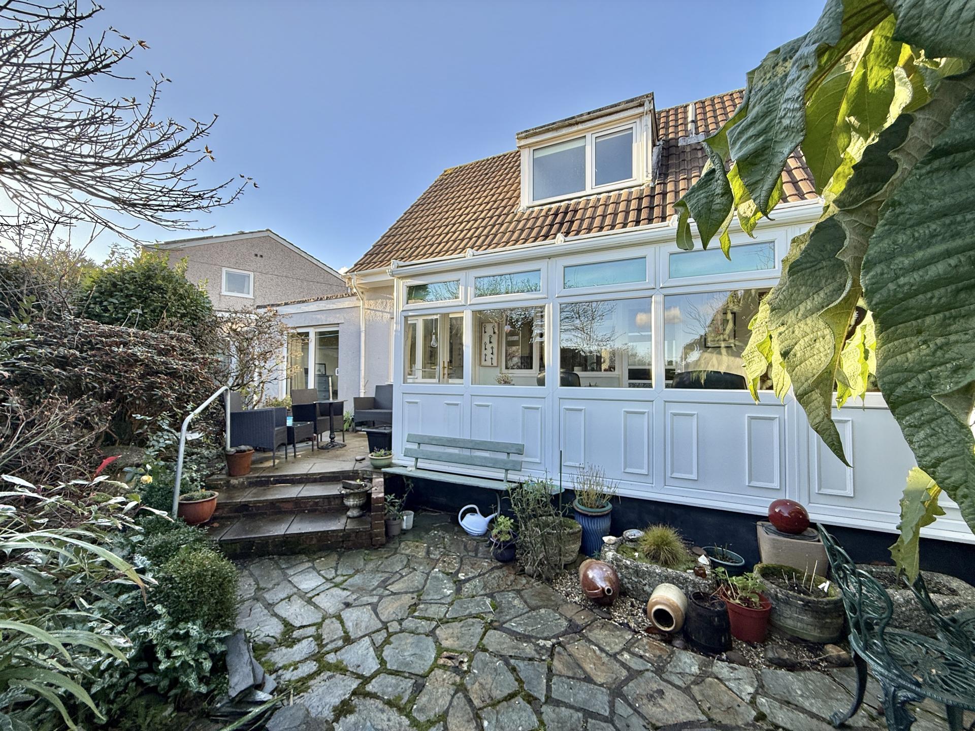 A well presented semi-detached three bedroom home on Courtlands Road in Tavistock. The property has been owned by the current vendor for 35 years and has been extended to suit downstairs living, with a downstairs bedroom and shower room - so could be ideal for multi-generational living as there are two further bedrooms and a bathroom upstairs. You enter to a useful porch then into a spacious entrance hall with under stairs storage cupboard. To the left is a contemporary sitting room with a stylish gas fireplace and large picture window to the front. Double doors at the rear lead out to a large conservatory which overlooks the garden. There is a well equipped kitchen plus a second reception room currently used as a dining room. This room has an archway leading into the ground floor bedroom, so could also make a great second sitting room. The bedroom is a bright space with sliding patio doors onto the garden and a modern en-suite shower room. Upstairs are two double bedrooms, one a particularly good size, and a bathroom with a corner bath and far reaching views to the Moors.