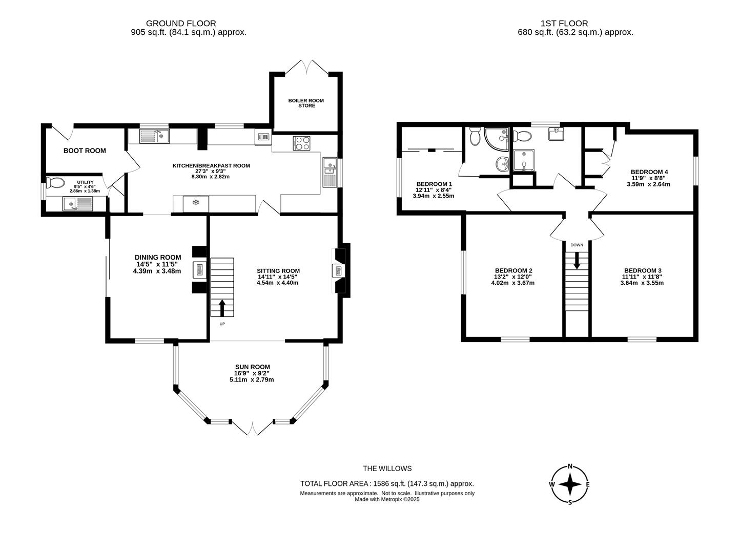 The House - The Willows is a very well presented period 4 bedroom house in a quiet rural setting, benefiting from uPVC double glazed windows and oil fired central heating and briefly comprises; Entrance Hall / Boot Room. Utility Room / Cloakroom; fitted base units, wood effect worksurface, stainless steel sink and drainer, space and plumbing for washing machine and tumble dryer, tiled floor, w/c. Kitchen / Breakfast Room; A dual aspect room with windows to the rear and side overlooking the land, range of fitted wall and base units, Oak worksurfaces, inset Bosch electric double oven, induction hob, extractor hood above, Kenwood integrated dishwasher, composite sink and drainer, inset freestanding Samsung American style fridge / freezer with water and ice dispenser. Dining Room; a dual aspect room with window to the front and sliding patio doors leading onto the paved patio. Fireplace inset Woodwarm woodburner.. Sitting Room; inset fireplace with Oak surround with woodburning stove on a slate hearth. Staircase rises to the first floor and opening to a triple aspect Sun Room; enjoying views over the land and the surrounding countryside beyond. On the First Floor; Bedroom 2; window to the front overlooking the land. Bedroom 3; a dual aspect room, window to the side overlooking the neighbouring land and surrounding countryside, window to the front overlooking the land. Bedroom 1; Fitted wardrobes with sliding mirror doors, window to the side enjoying views over the surrounding countryside. En suite; shower enclosure, w/c, vanity unit with wash basin and tiled floor. Family Shower Room; w/c, vanity unit with wash basin, large shower enclosure. Bedroom 4 / Study; Window to the side overlooking the garden and land, fitted wardrobe and storage, housing the hot water tank.