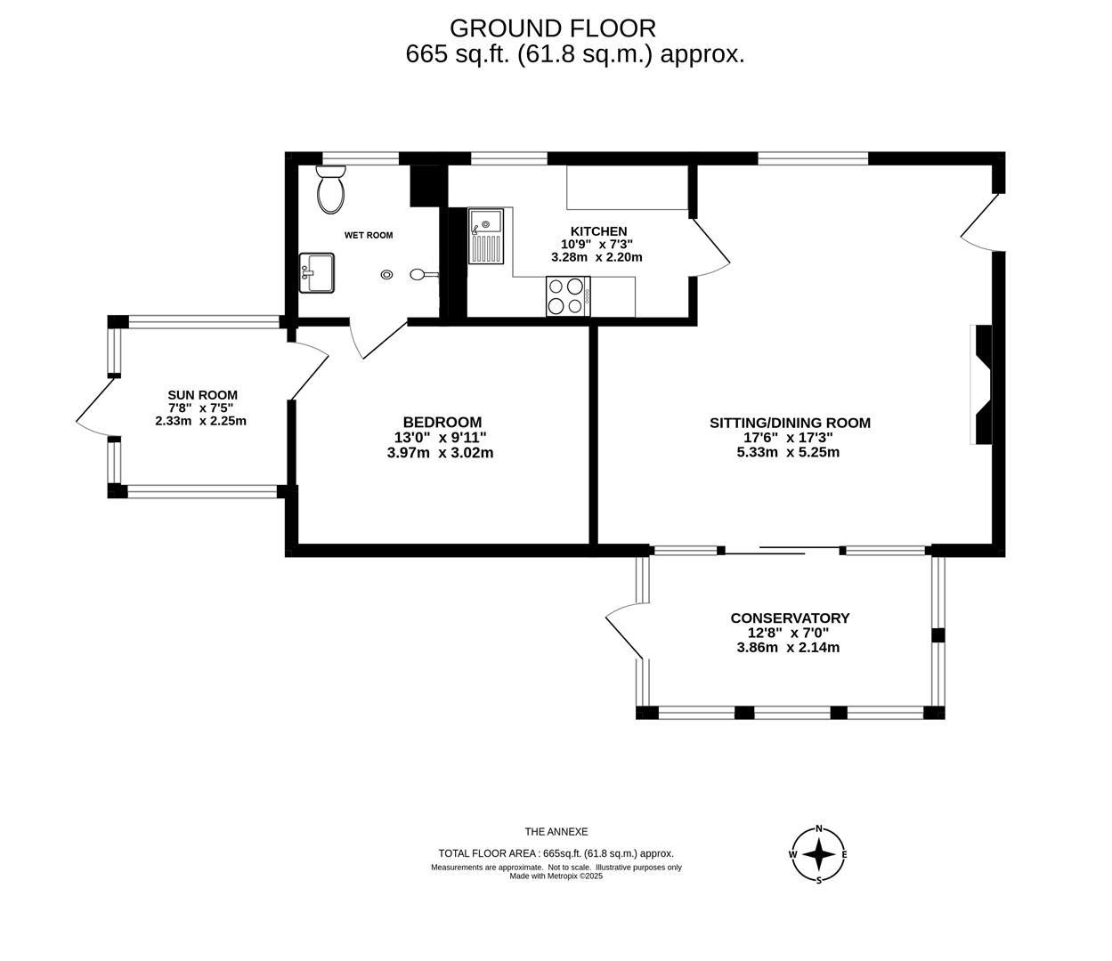 The Annexe - The well-presented single storey annexe provides further accommodation and has residential use with the potential to be used as a holiday let. The accommodation benefits from uPVC double glazing and electric heating and briefly comprises: Sitting / Dining Room; a triple aspect room with glazed door to the side, window to the rear and sliding doors opening to the conservatory. Kitchen; fitted wall and base units, Beech effect worksurface, stainless steel sink and drainer, Whirlpool electric oven and hob, extractor hood above, space and plumbing for washing machine and tumble dryer, window to the rear. Bedroom; a double room, window the front enjoying views over the land and garden. Wet Room; shower, w/c, vanity unit, wash basin, fully tiled floor and walls, window to the rear. Porch / Sun Room; triple aspect enjoying views over garden and land.
