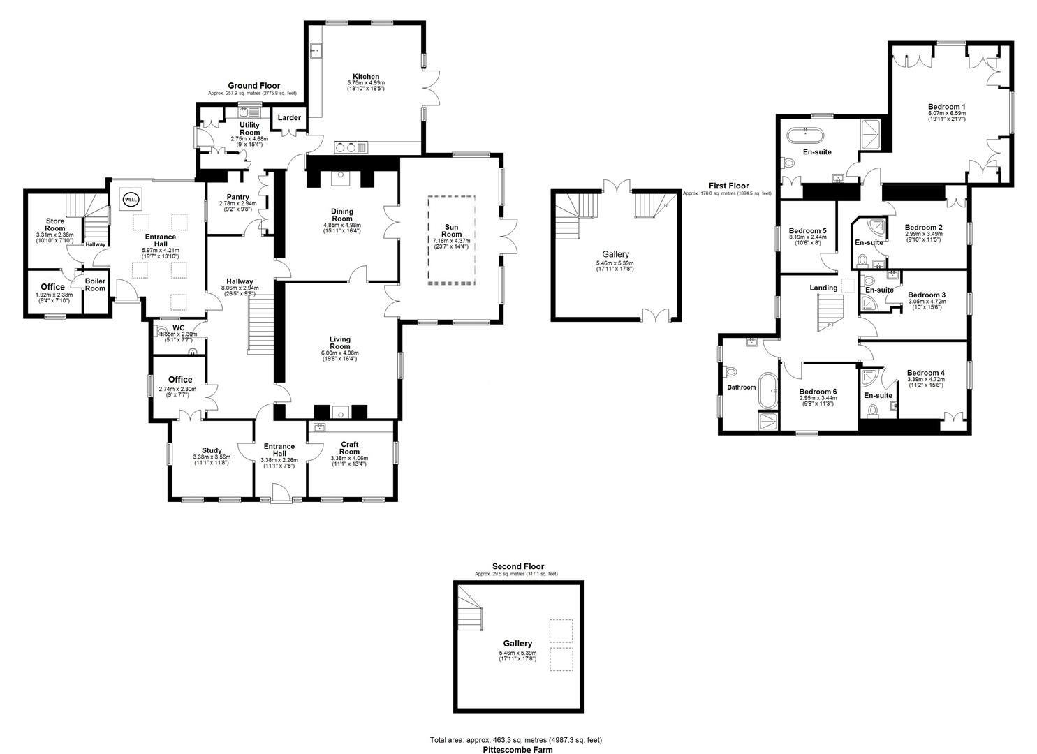 Traditional Barn: - 8.30m x 19.60m (27'2" x 64'3" ) - With potential for conversion, entertaining space or indoor sports hall.