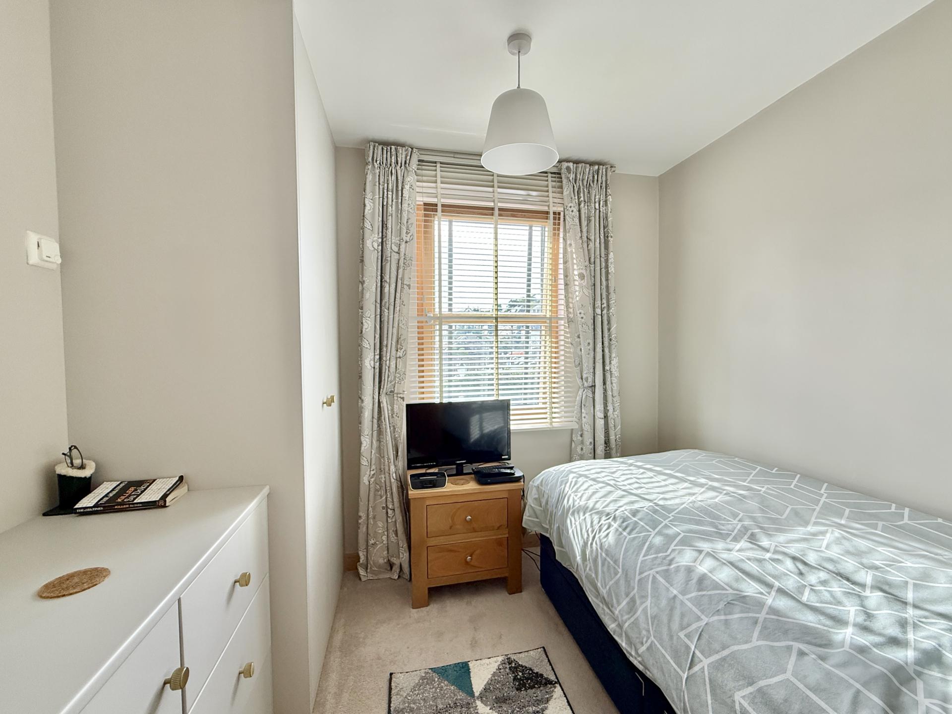 Double glazed window to front with fitted blinds, fitted double wardrobe and matching drawers, underfloor heating.