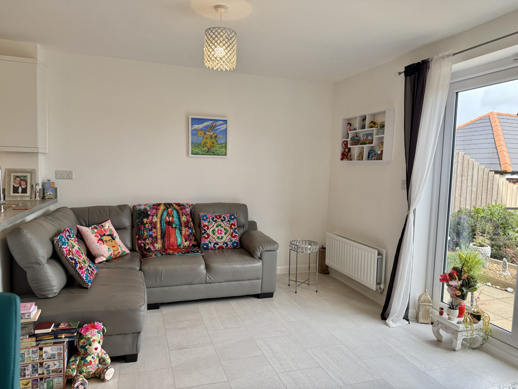 Built in 2021 with over 5 years left of its NHBC, this modern town house offers flexible accommodation over three floors with some great far reaching views from the rear. The property is currently laid out as a three bedroom, with a separate sitting room on the first floor, however this could easily be used as a fourth bedroom if required. On the ground floor is a useful utility room with a WC and basin and a spacious open plan kitchen/dining/family room. This room is a bright space with French doors and Karndean flooring carried on through from the hallway. The kitchen has a good array of units with the addition of a peninsula for extra storage and worktops. There is an integrated AEG dishwasher, with fridge/freezer and oven/hob. There is plenty of room for a dining area as well as a seating area plus under stairs storage, making it ideal as a main reception room. On the first floor is the second sitting room with a small double bedroom and modern family bathroom. Finally, on the top floor is a shower room and two spacious bedrooms, one with a built in cupboard and some fantastic far reaching views over surrounding countryside and to the moors.