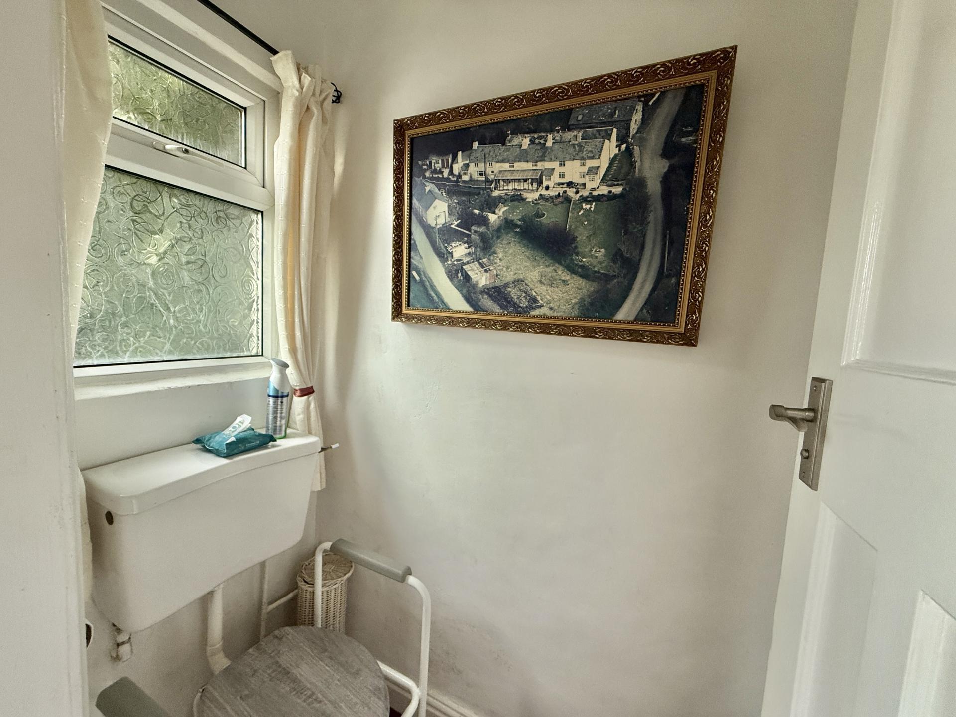 Low flush w.c, wash hand basin, tiled floor, double glazed window to side.