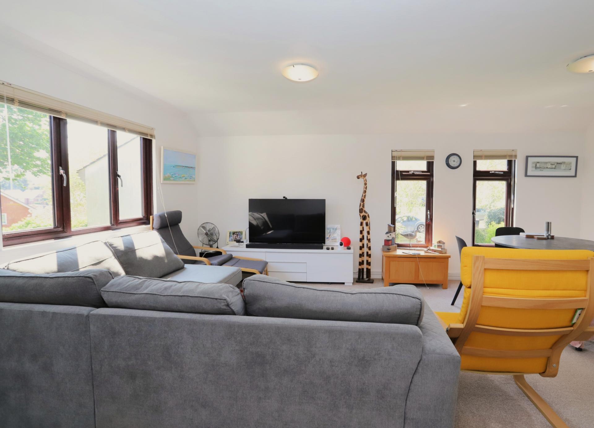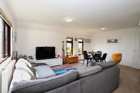 The generously sized living/dining room offers a lovely distant sea view and is perfect for both relaxing and entertaining. This dual-aspect space benefits from PVCu double glazed windows to the side and rear and has more than enough room for a dining table and a large sofa.