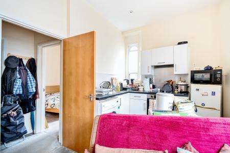 The communal entrance hall is accessible via a communal entrance door equipped with a security entry system. The apartment has an entrance hallway with a security phone. This leads into the open-plan lounge/kitchen. The kitchen has a built-in oven and hob, as well as space for a fridge/freezer and washing machine. There are double glazed windows on the front side.