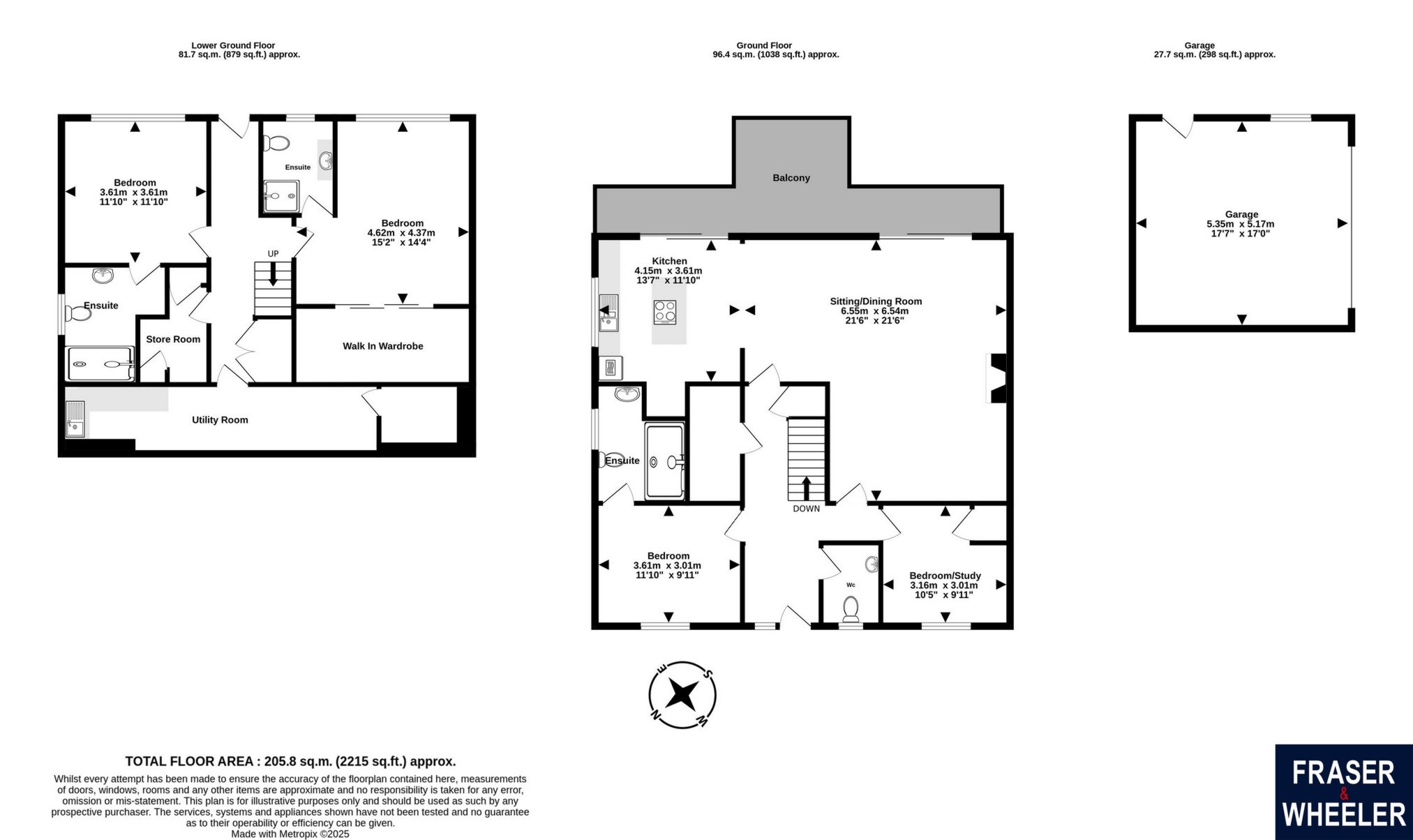 Lower Ground Floor: Two further en-suite bedrooms, including a superb principal suite with walk-in wardrobe, plus a utility room, and additional storage.