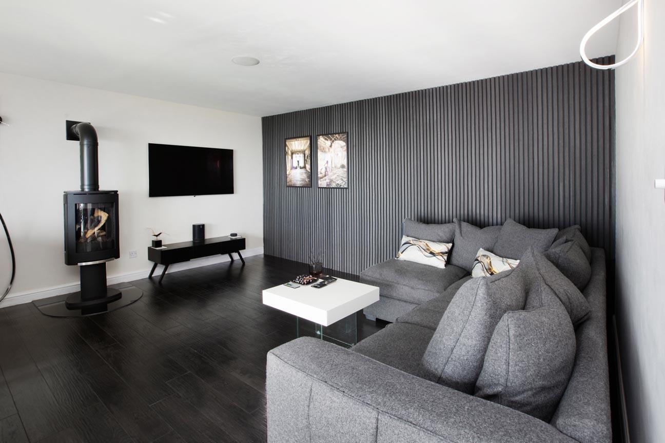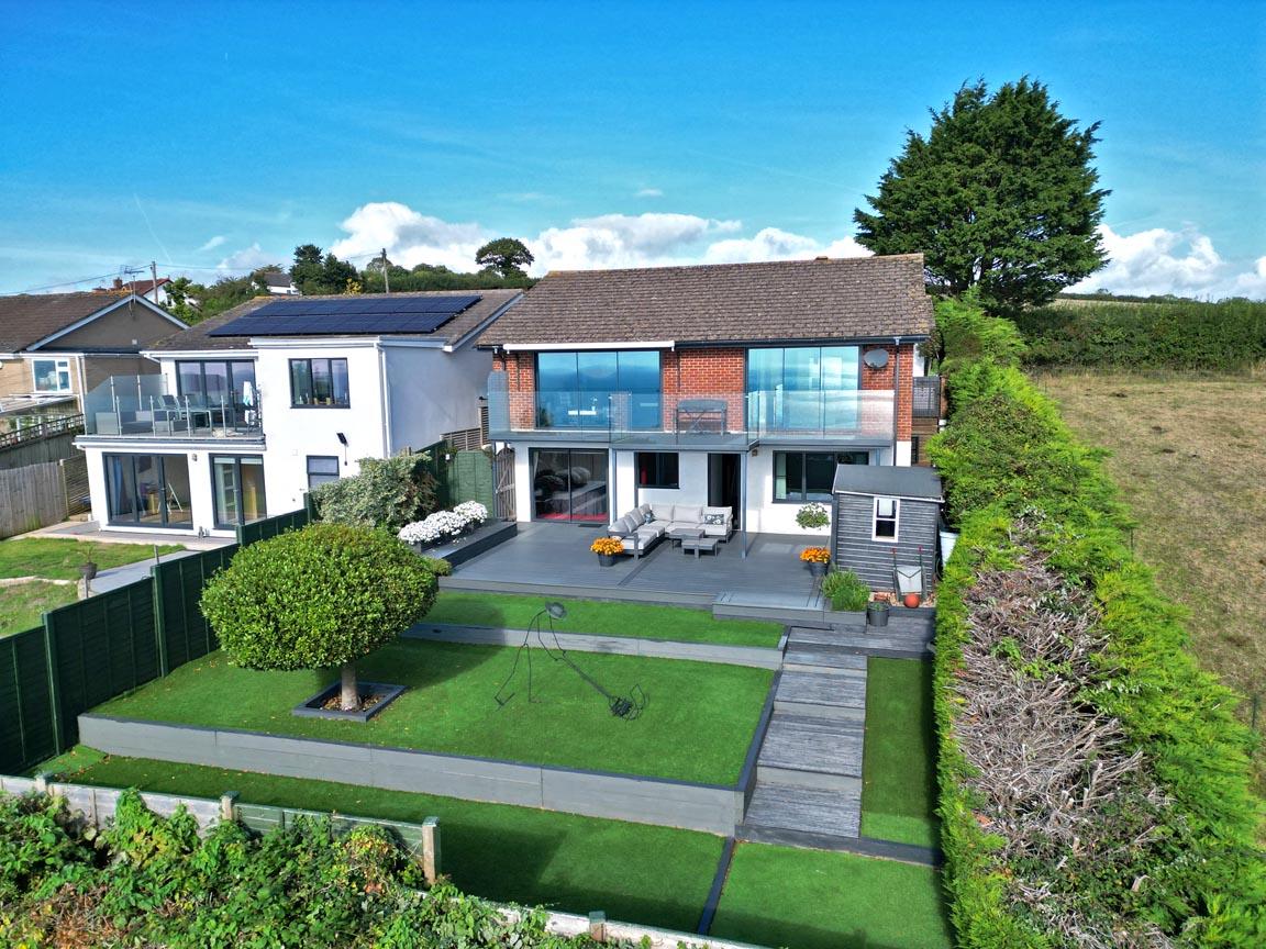 Outside, the landscaped garden has been designed for low-maintenance enjoyment, featuring stylish decking, neatly terraced artificial lawns, and a covered seating area - all perfectly oriented to capture the sun and frame the sea views.
