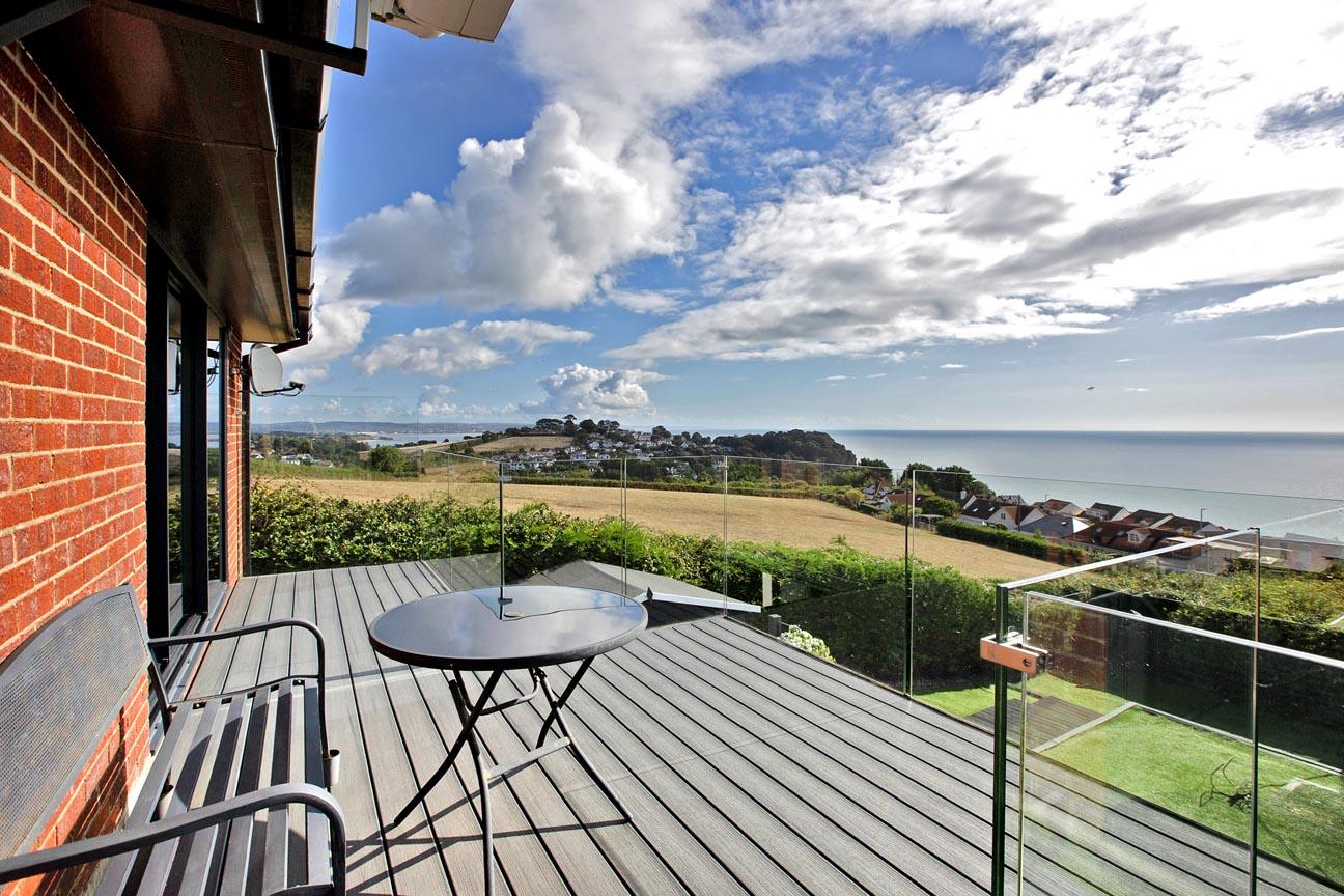 BALCONY/TERRACE: A real feature of the property with composite Trex decking, glass balistrade, sun blind and panoramic coastal views with a southerly aspect.