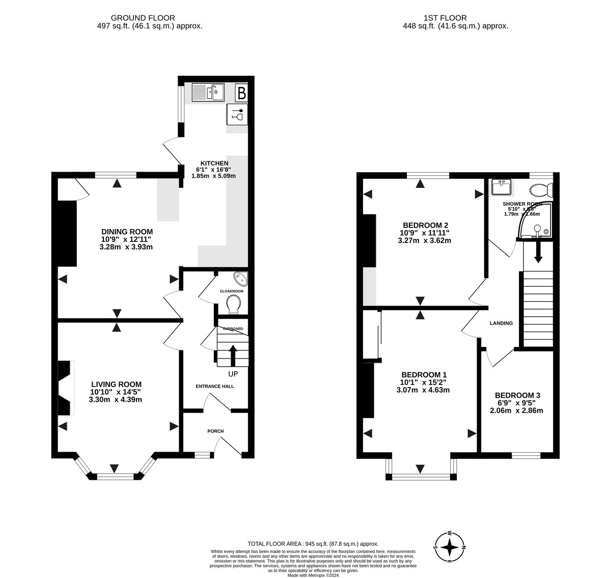 The accommodation briefly comprises, on the ground floor, a porch, an entrance hallway with a staircase rising to the first floor and a cupboard and convenient cloakroom beneath, a fabulous living room filled with light from a bay window to the front that has fitted shutters, and with a decorative, possibly original working fireplace that makes a wonderful feature and focal point for the room, and a generously sized dining room with plenty of space for a table and seating, perfect for any occasion, open-plan to a modern galley-style kitchen that has plenty of worktop and cupboard space, a gap for a cooker and upright fridge/freezer, with an integrated dishwasher, and space with plumbing for a washing machine. A wall-mounted combi-boiler, hidden in a matching wall cabinet, provides the central heating and hot water on demand, and there is a back door to the courtyard garden.