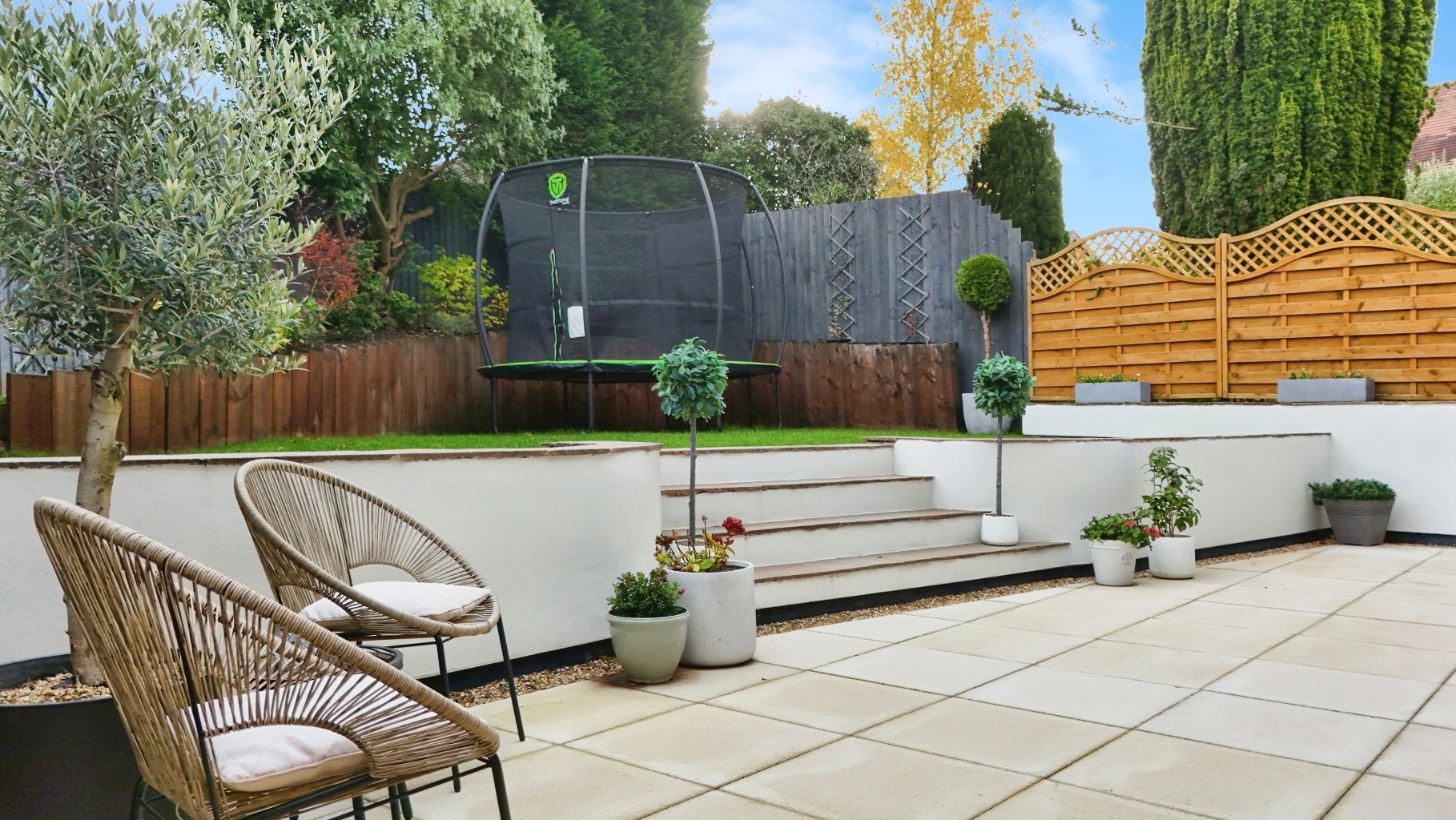 - Landscaped Gardens with Patioed Area and Tiered Lawn