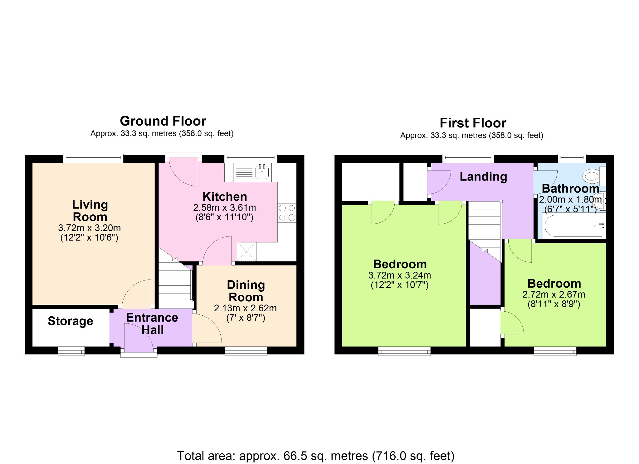 Ascending to the first floor, you will find two generous bedrooms, each offering comfortable accommodation and plenty of natural light. These rooms provide flexible space for a growing family, guests, or a home office. A well-appointed family bathroom serves both bedrooms, completing the upstairs layout with practicality and style.