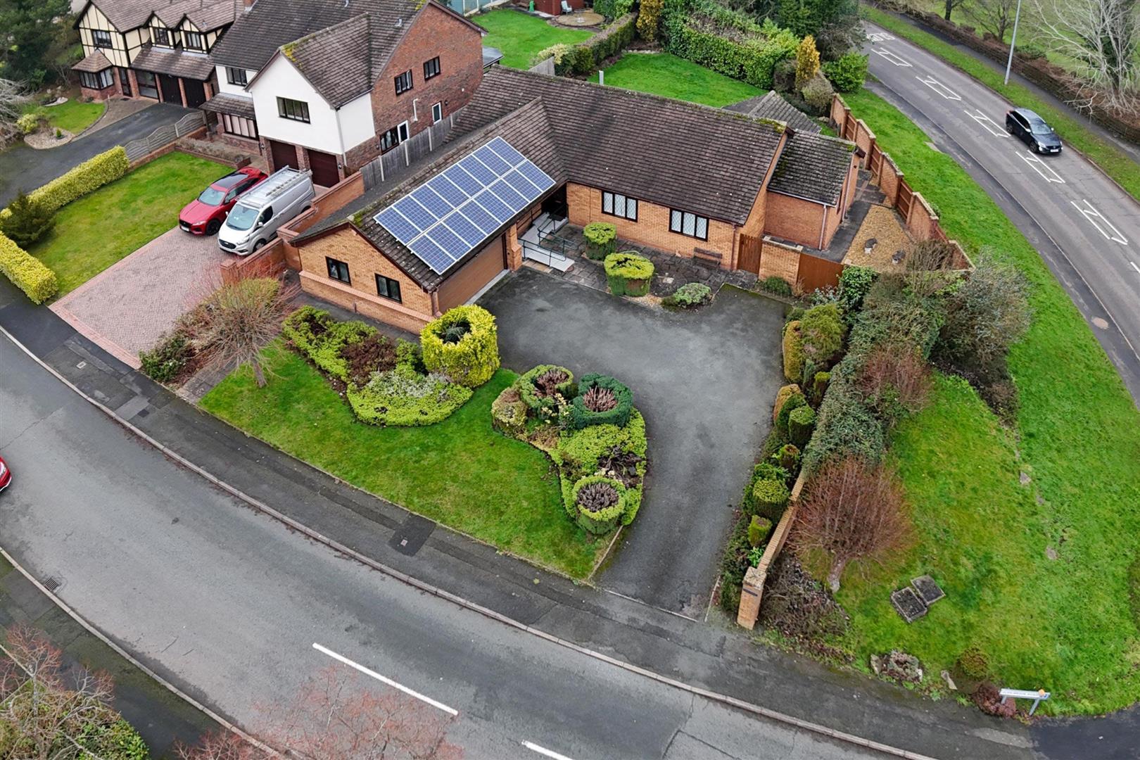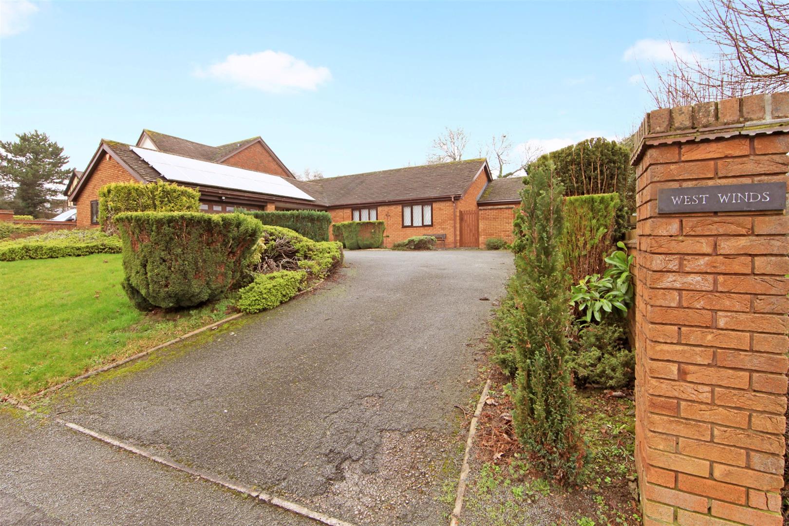 Available With No Upward Chain - West Winds is a detached three bedroomed bungalow build on a large corner plot, with a double garage, plenty of driveway parking and gardens to the front and rear. The bungalow has been built and subsequently extended with the needs of wheelchair users in mind, and currently has ramps to facilitate easy access to the property from every doorway. The property benefits from P.V. panels, CCTV (internal and external) and connected alarm system.