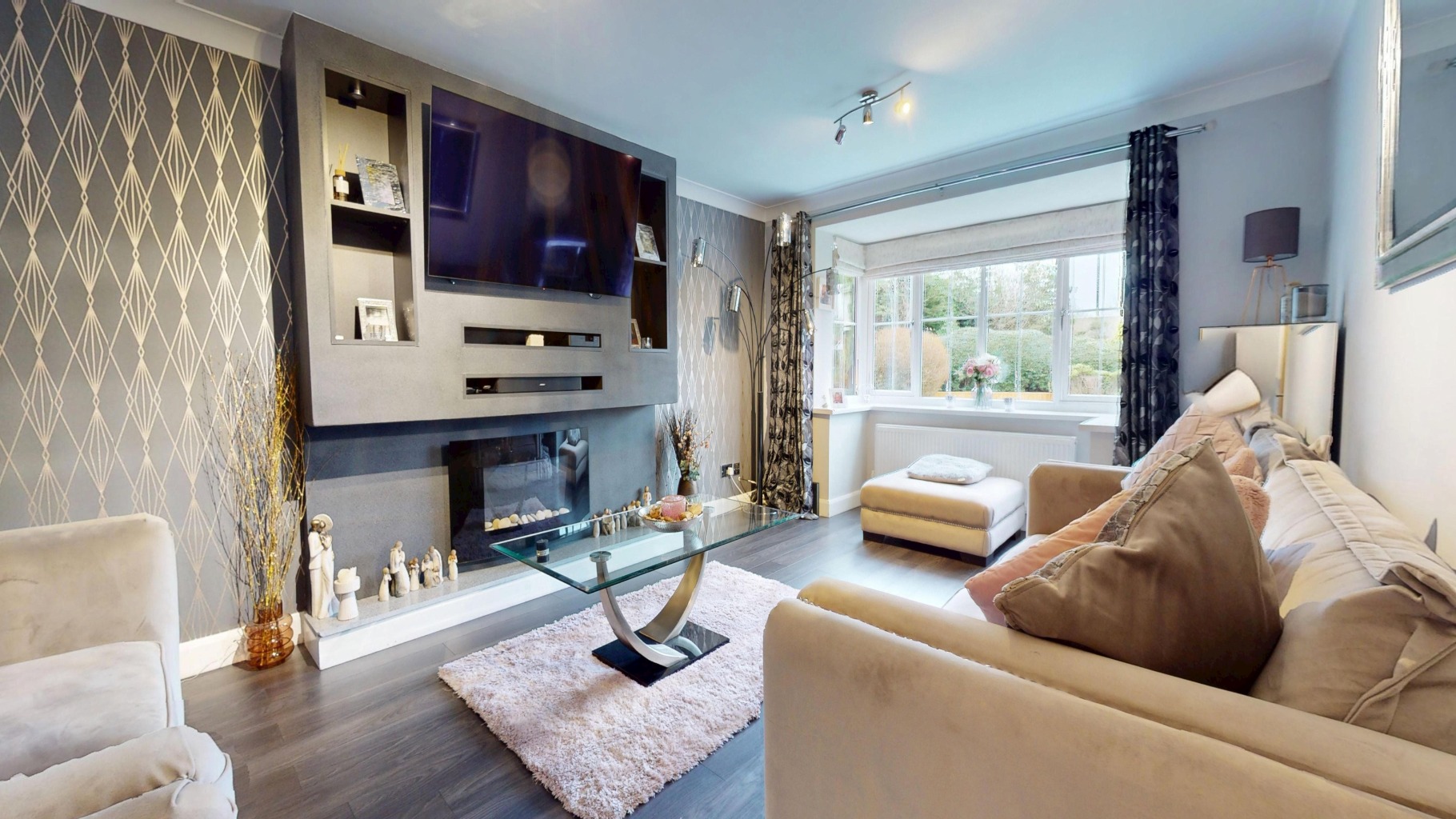 - Fantastic Front Living Room Benefitting from Media Wall & Bay Window