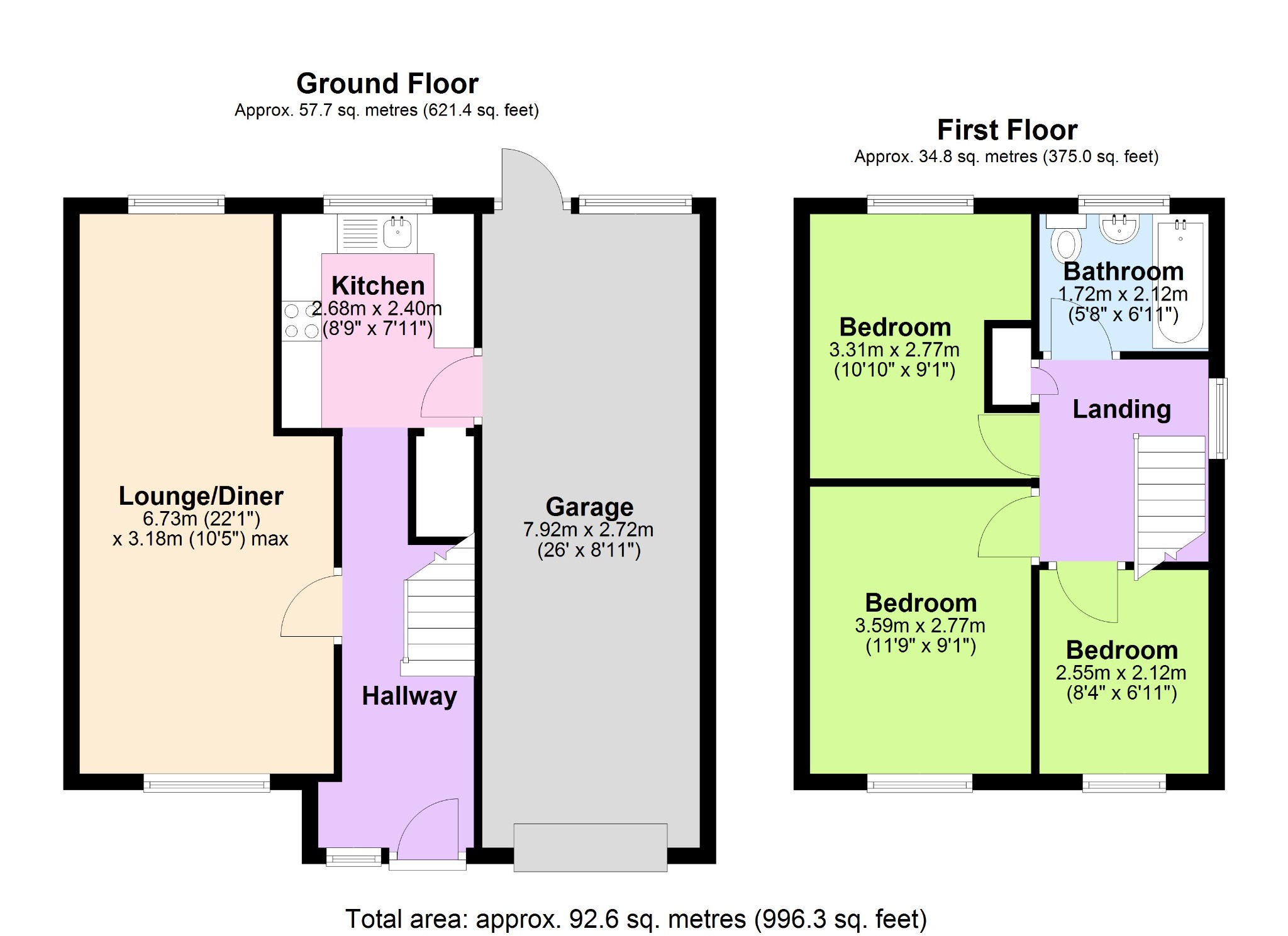 - Three Bedrooms Served by Family Bathroom