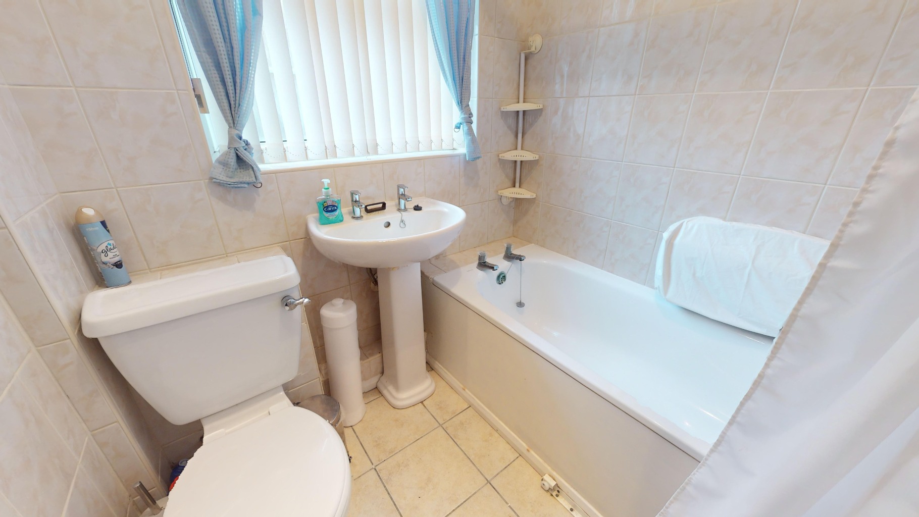 - Modern family bathroom with shower over bath