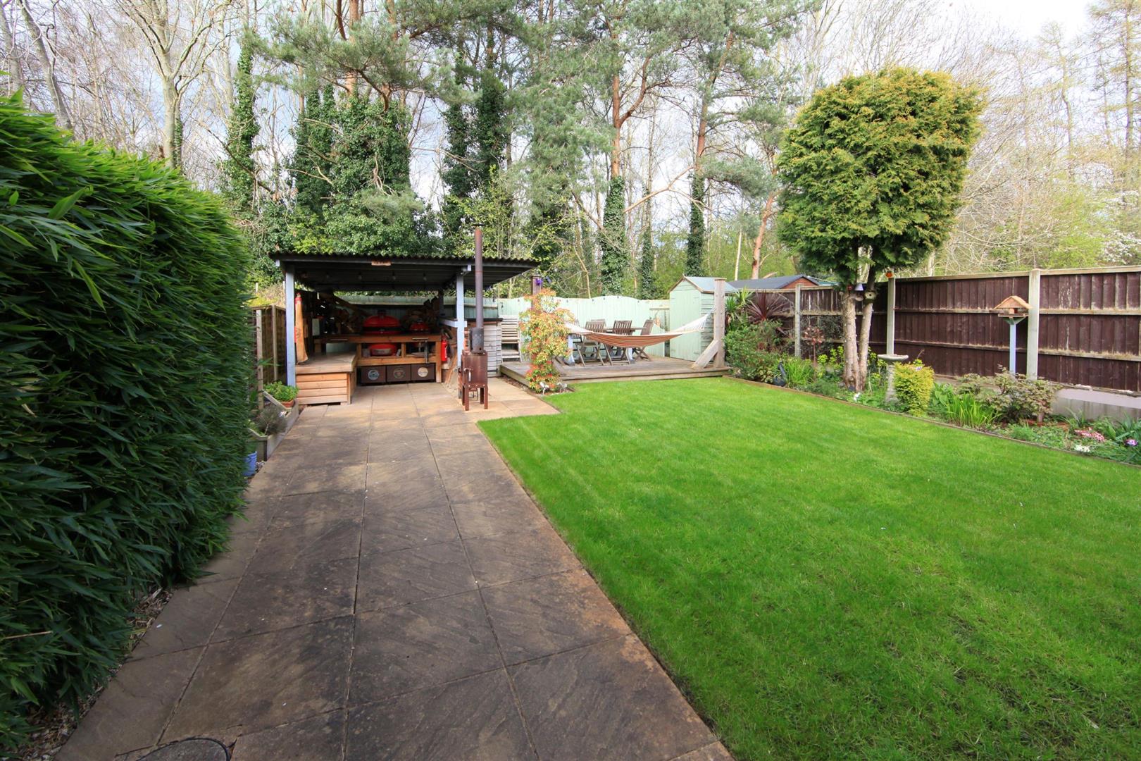 An attractive feature of this property is the lovely rear garden with its mature tree backdrop. Landscaped by the current owners to provide areas of formal lawn, paved patio, timber decking and well established shrubbed borders. To one corner is a pleasant covered BBQ/outdoor entertaining area.
