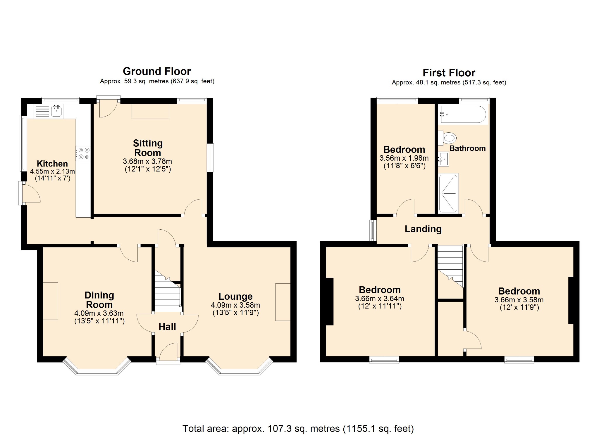- Three Good Sized Bedrooms & Family Bathroom