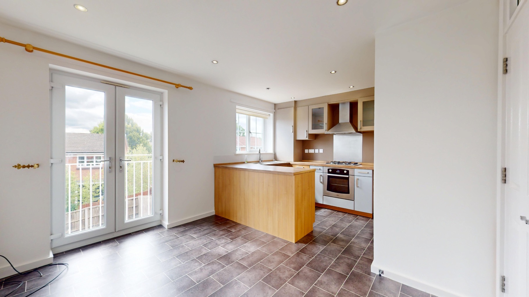 - First Floor Open Plan Kitchen/Dining Room with Juliet Balcony