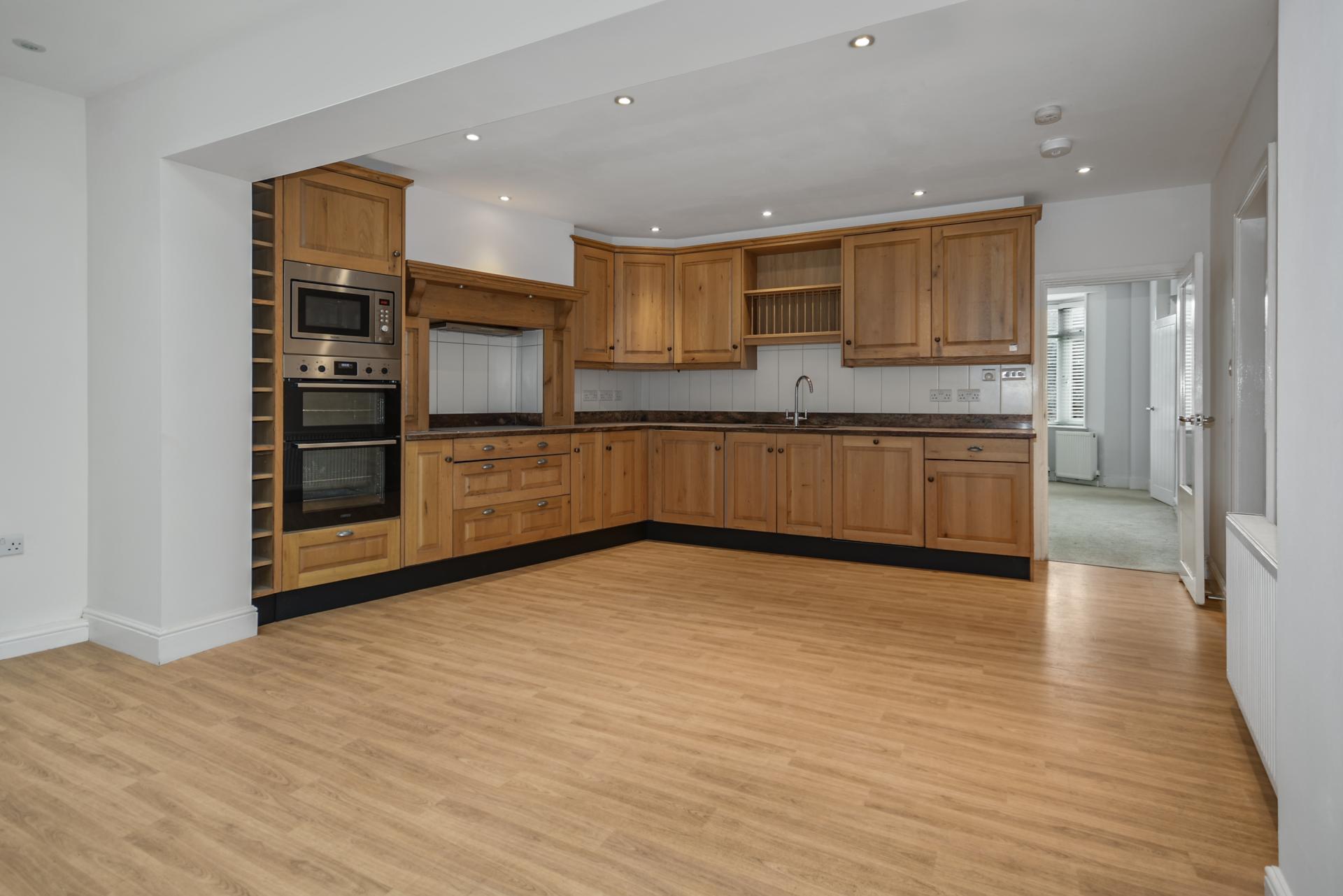 Kitchen/Dining Room: Fitted with range of wooden base and wall units with granite worktop over, inset with stainless steel sink unit. Double Zanussi electric oven with built in Baumatic microwave oven over, Siemens hob with concealed extractor over. Integrated Beko dishwasher. Tiled splash-backs. Inset ceiling lights. Wood effect laminate floor. Door to walk in storage cupboard. Opening to dining area with skylight over. Door to the garden. Door to: