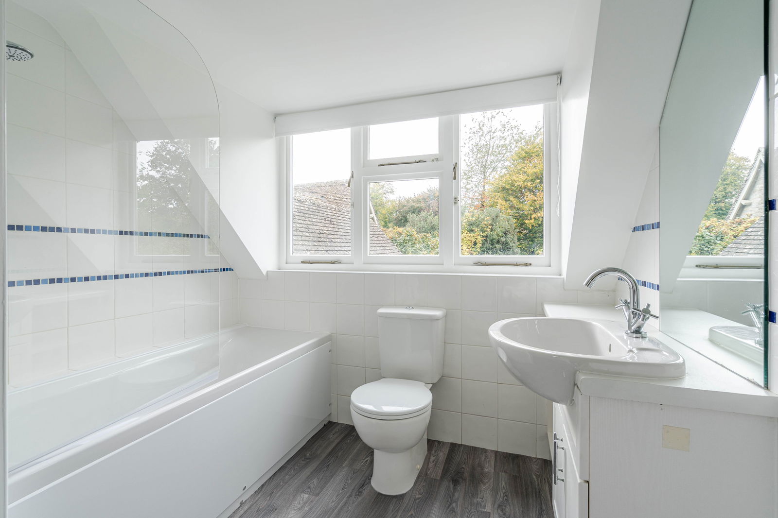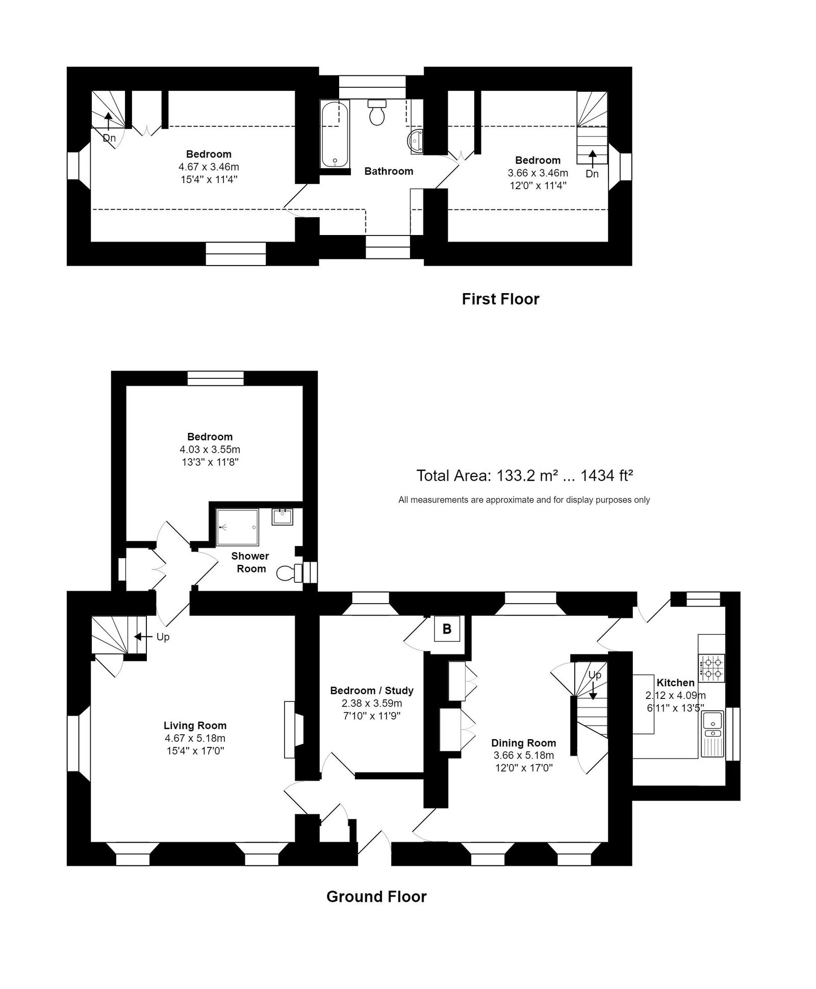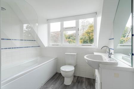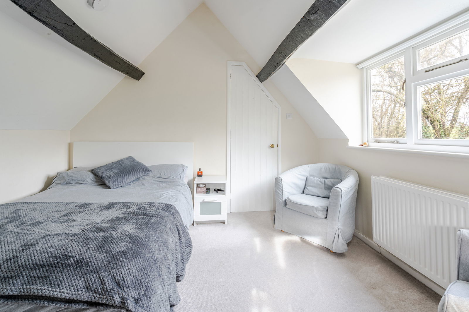 The ground floor features a modern fitted kitchen, alongside three versatile reception rooms. The dining room, with its attractive slate tiled flooring and an exposed red brick former fireplace feature, adjoins the kitchen. There is a separate study, whilst the dual-aspect living room is bathed in natural light and complete with a lovely open fireplace. Completing the ground floor is a convenient bedroom suite, comprising a comfortable double bedroom, fitted wardrobes and an en-suite shower room. Ascending to the first floor, there are two characterful bedrooms that share a practical Jack and Jill style bathroom.