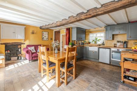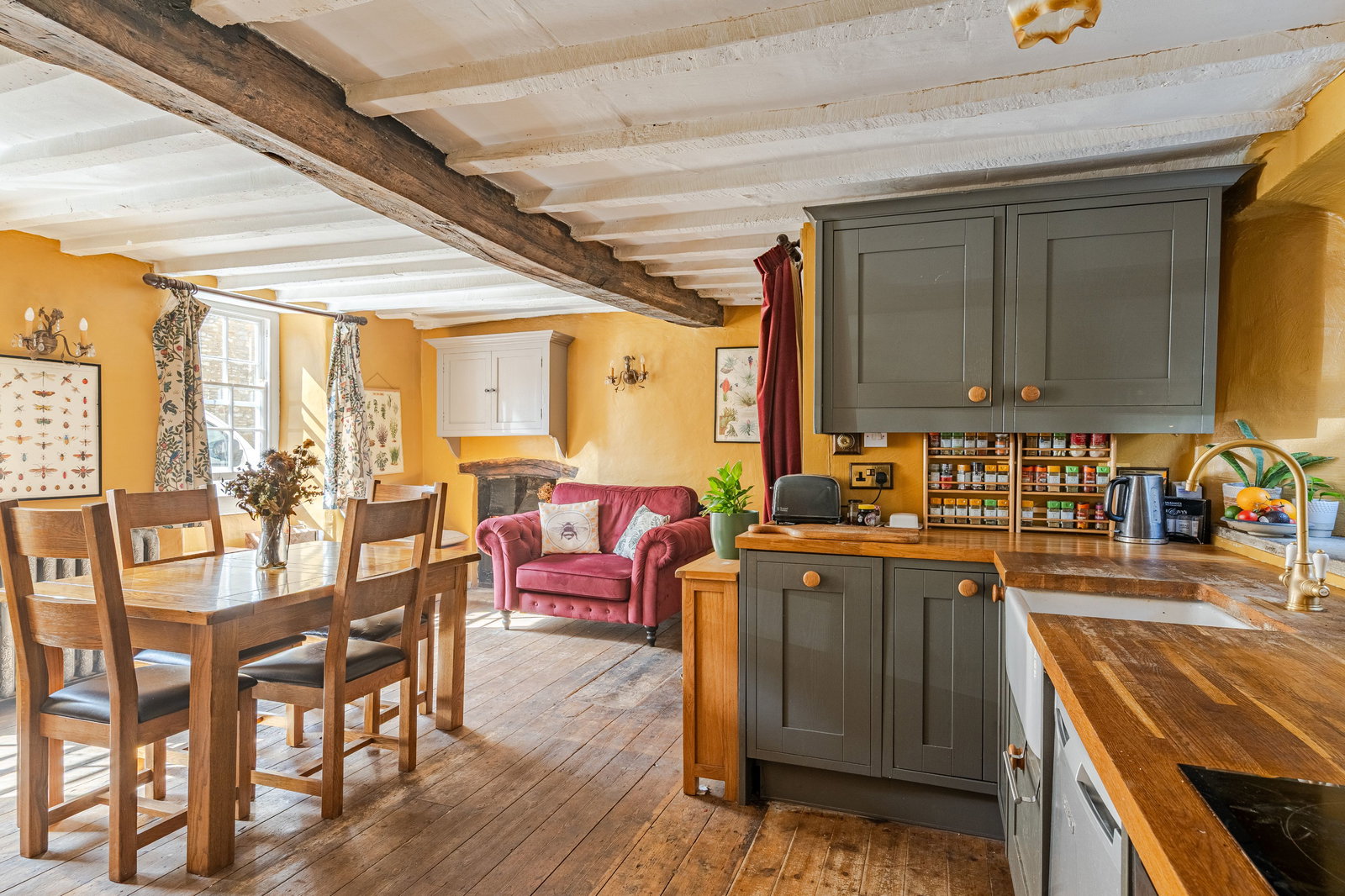 The ground floor comprises a large, open plan kitchen/reception which has a wood burning stove and a stylish, modern fitted kitchen with oak worktops and a built-in dishwasher. On the first floor, there is a bathroom and townhouse style living room or optional bedroom. On the top floor there are two double bedrooms. The property has a charming courtyard garden at the rear which benefits from a private side access through a pedestrian gate. On street parking is available on The Green.
