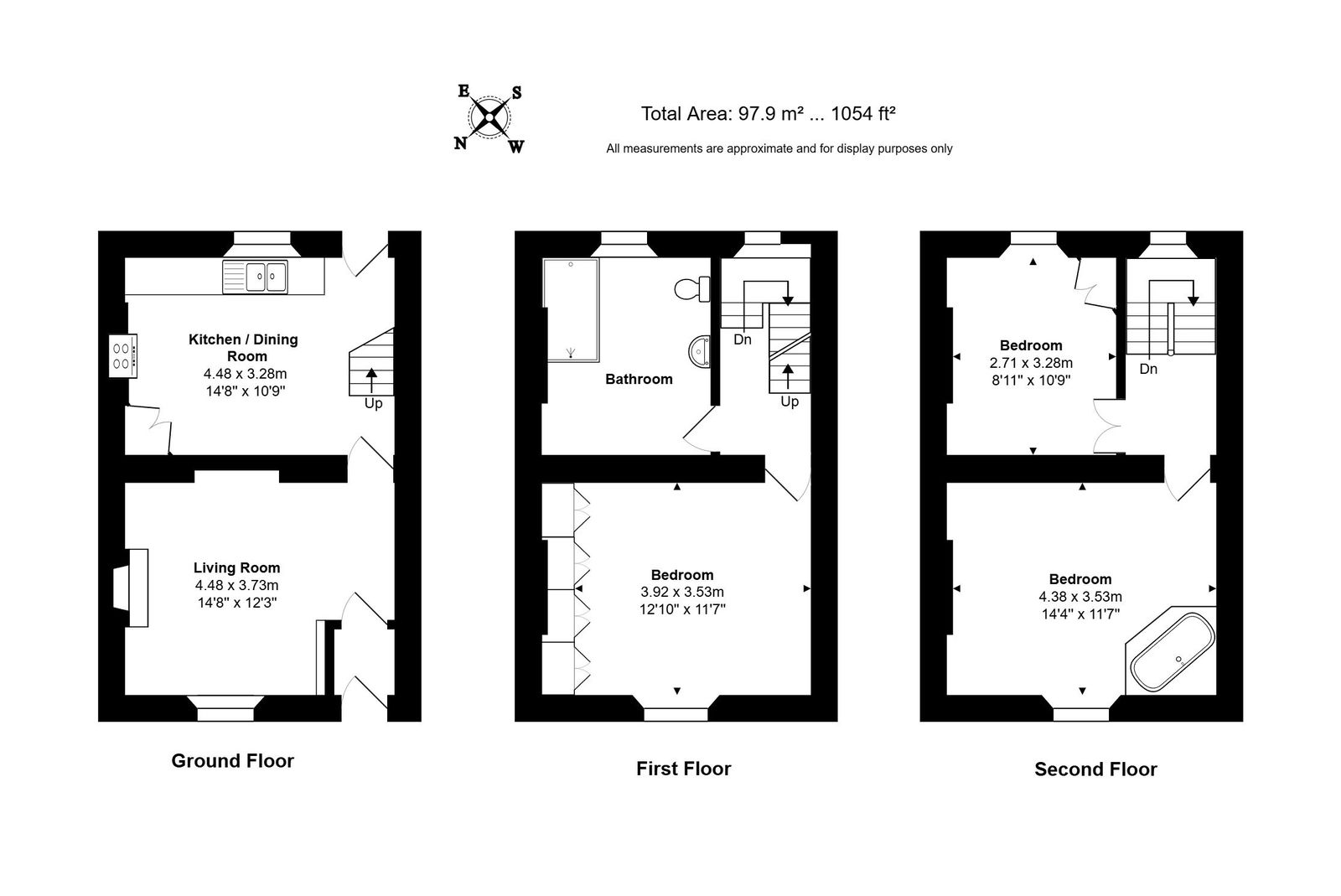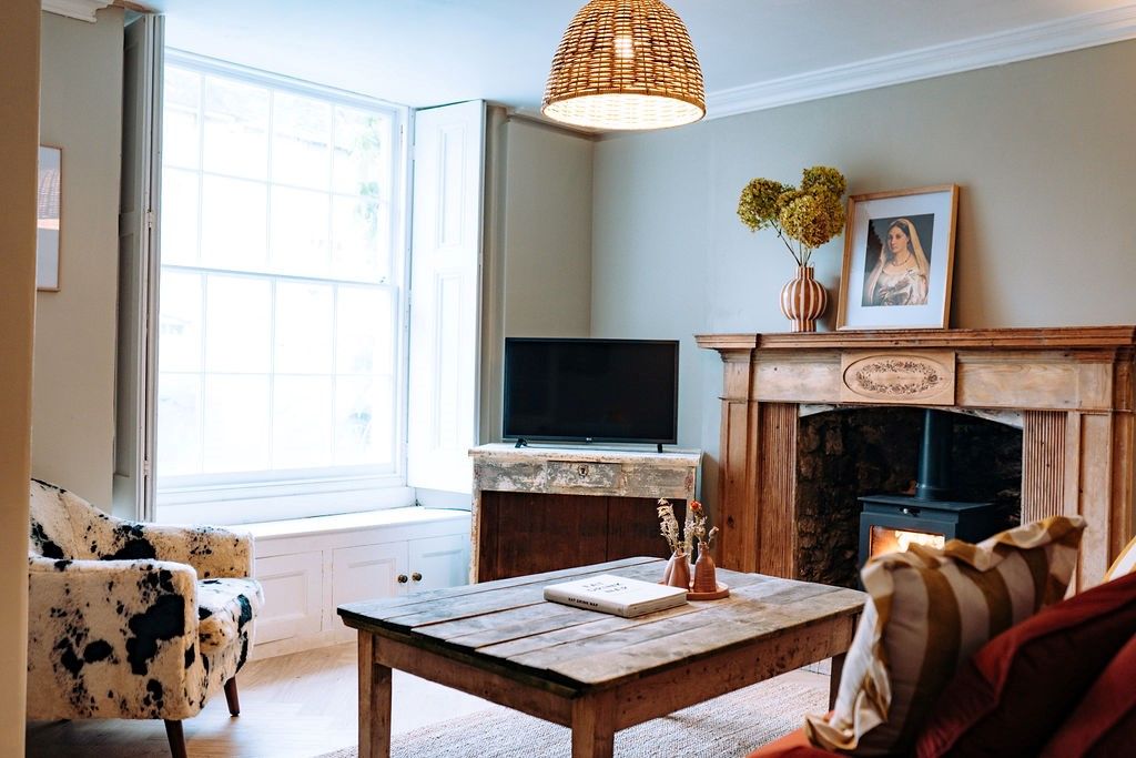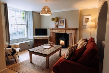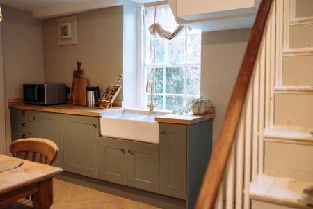 An internal porch opens to the front reception room with an ornamental timber fireplace, wood-burning stove, and charming window seat. The kitchen is positioned at the rear with access to the garden and has been refitted with timber units and worksurfaces, and a double Belfast sink. The first floor comprises a stylish bathroom with a large walk-in shower unit, and a spacious double bedroom with fitted wardrobes. On the top floor there are two further bedrooms, one of which features a free-standing bath for an element of luxury.