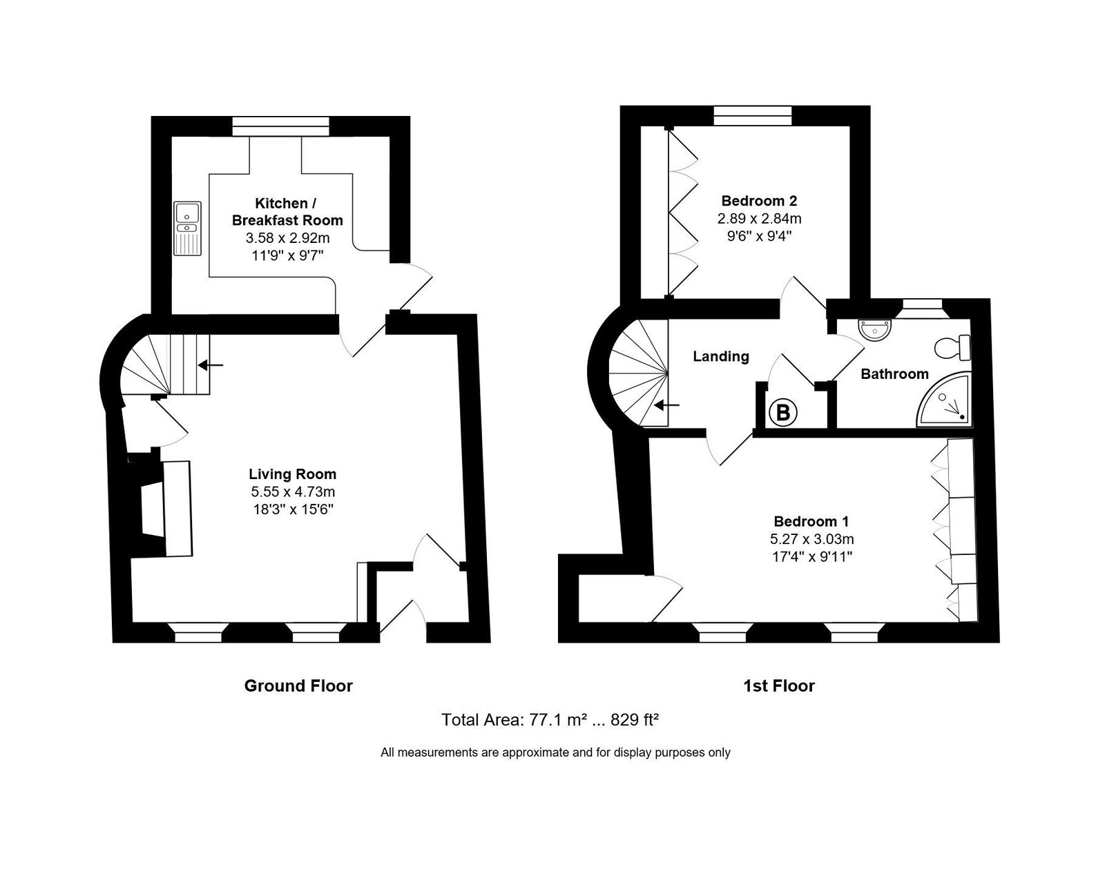 Having been most recently used as a holiday let, the accommodation is very well presented and is arranged over two floors extending in all to 829 sq.ft. On the ground floor, an entrance lobby opens to a spacious and characterful reception room with surprisingly high ceiling, leading to a kitchen with underfloor heating and a breakfast bar. A winder staircase from the living room leads up to the first-floor landing with an airing cupboard whilst there are two double bedrooms both with fitted wardrobes, and a modern shower room. A drop-down ladder accesses the attic which has potential for further conversion (subject to usual planning permission).
