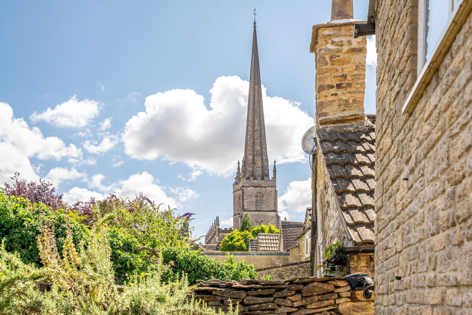 - Good-sized garden with views of the church