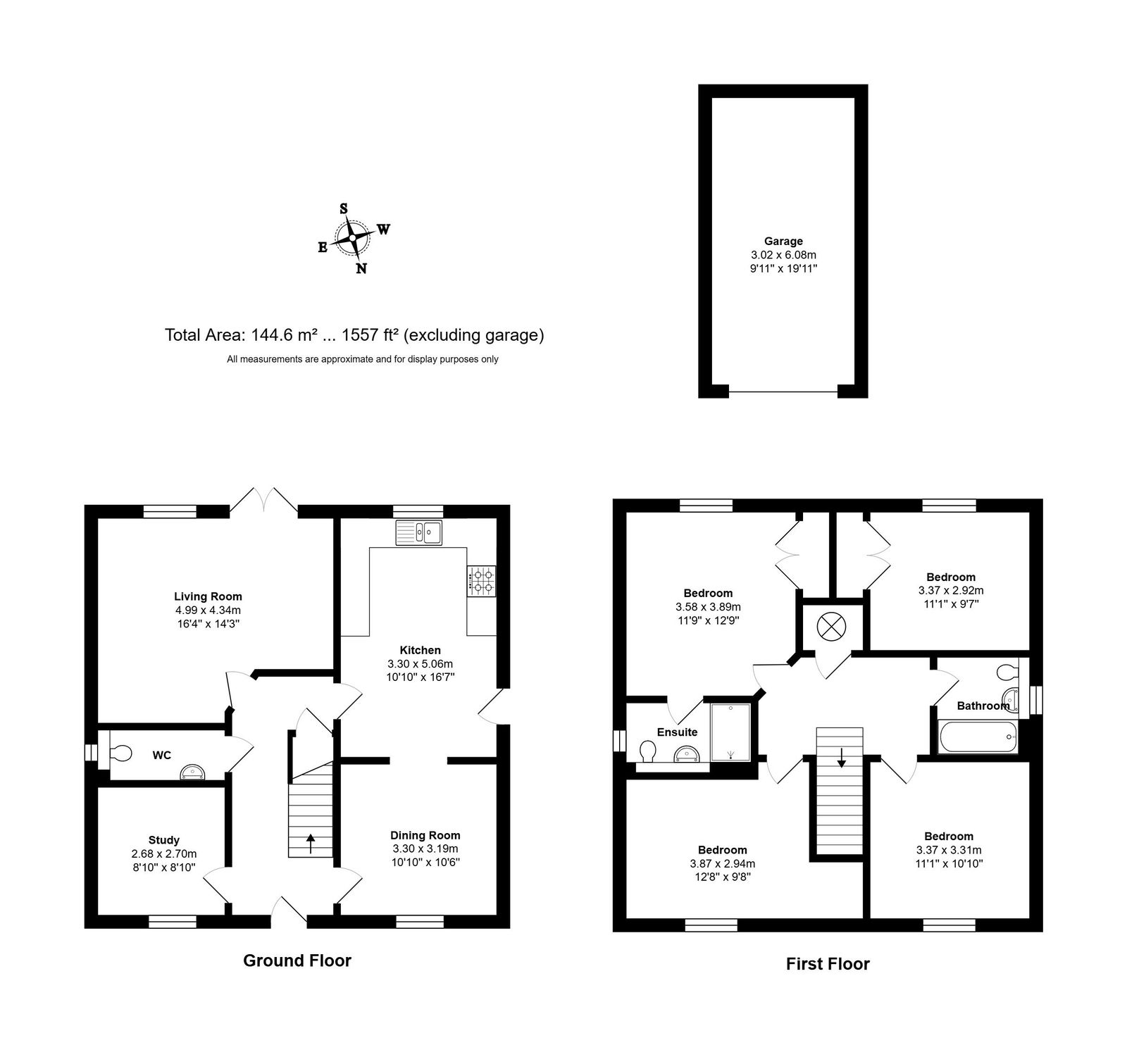 The ground floor configuration has a central entrance hall with three reception rooms comprising a front study, dining room and rear living room with patio doors to the garden. The dining room is open to the fitted kitchen with convenient side access to the driveway. On the first floor there are four bedrooms, a family bathroom, and en-suite to the main bedroom.