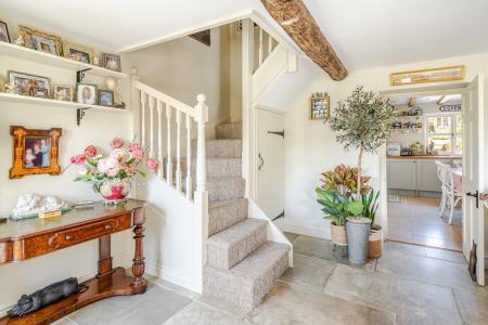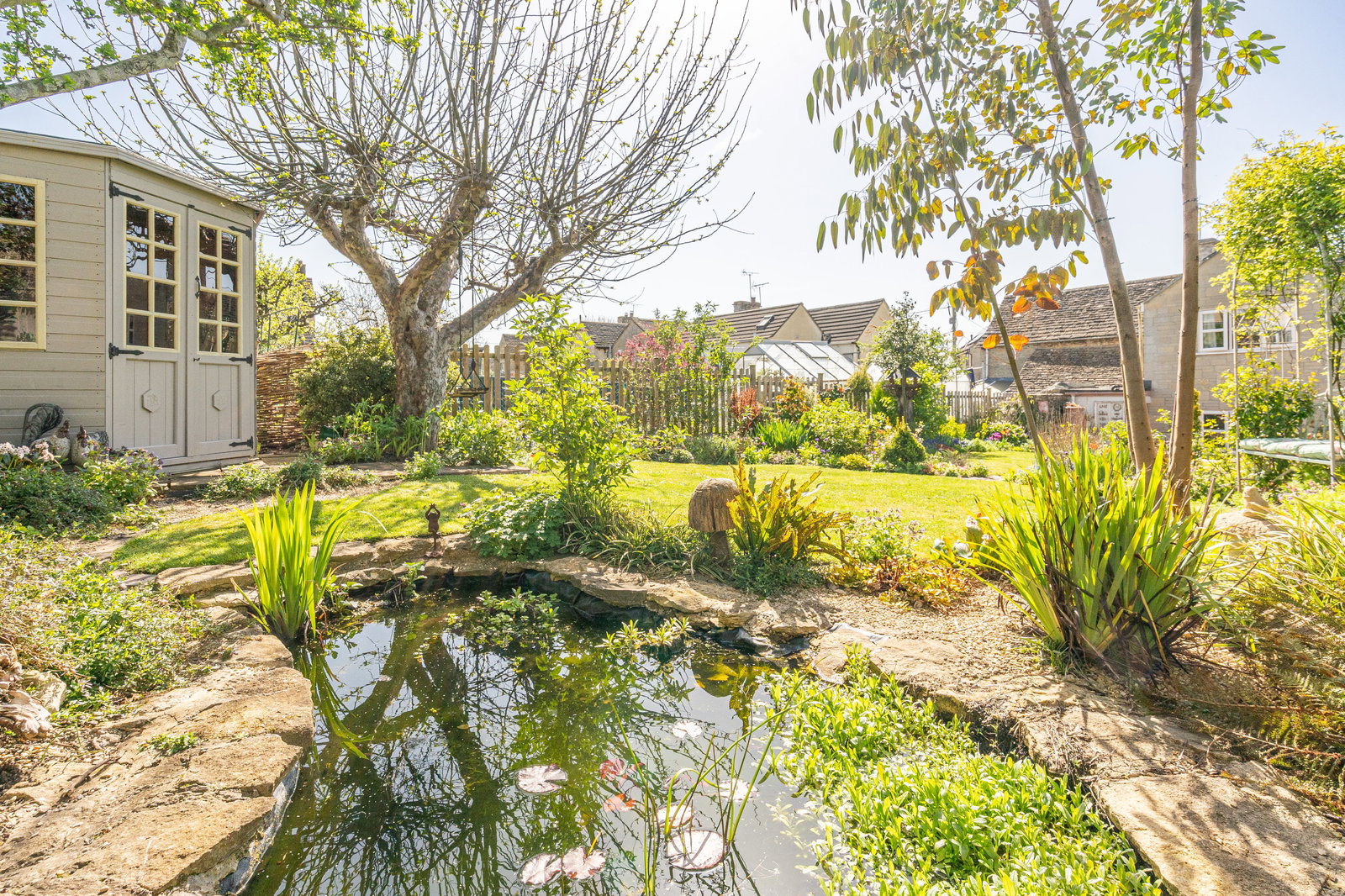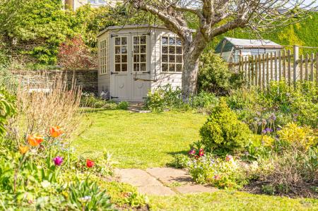 The front elevation is enclosed by traditional stone walling with a central timber gate. The rear garden is a particular feature, much larger than the average garden of this type. The garden has been the subject of extensive landscaping which includes creating a fantastic enlarged secluded patio terrace. Steps lead up to a large lawn bound by vibrant flower beds continuing to a delightful wildlife pond area beside a summer house. There is a pedestrian right of way over the neighbour's garden for access. A store room at the back of the cottage provides useful storage space and houses the gas combi boiler. Unrestricted on street parking is easily available in front of the cottage.