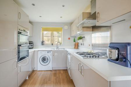 On the ground floor, a central storm porch opens to an entrance hall with under stairs storage and WC off. The good-sized living room is dual-aspect with patio doors opening to the rear garden. The kitchen/dining room also has patio doors connecting to the garden and boasts a range of fitted units with a gas hob and built-in oven. From the first floor landing there is a family bathroom and three bedrooms. The principal bedroom has a double fitted wardrobe and an en-suite shower room.
