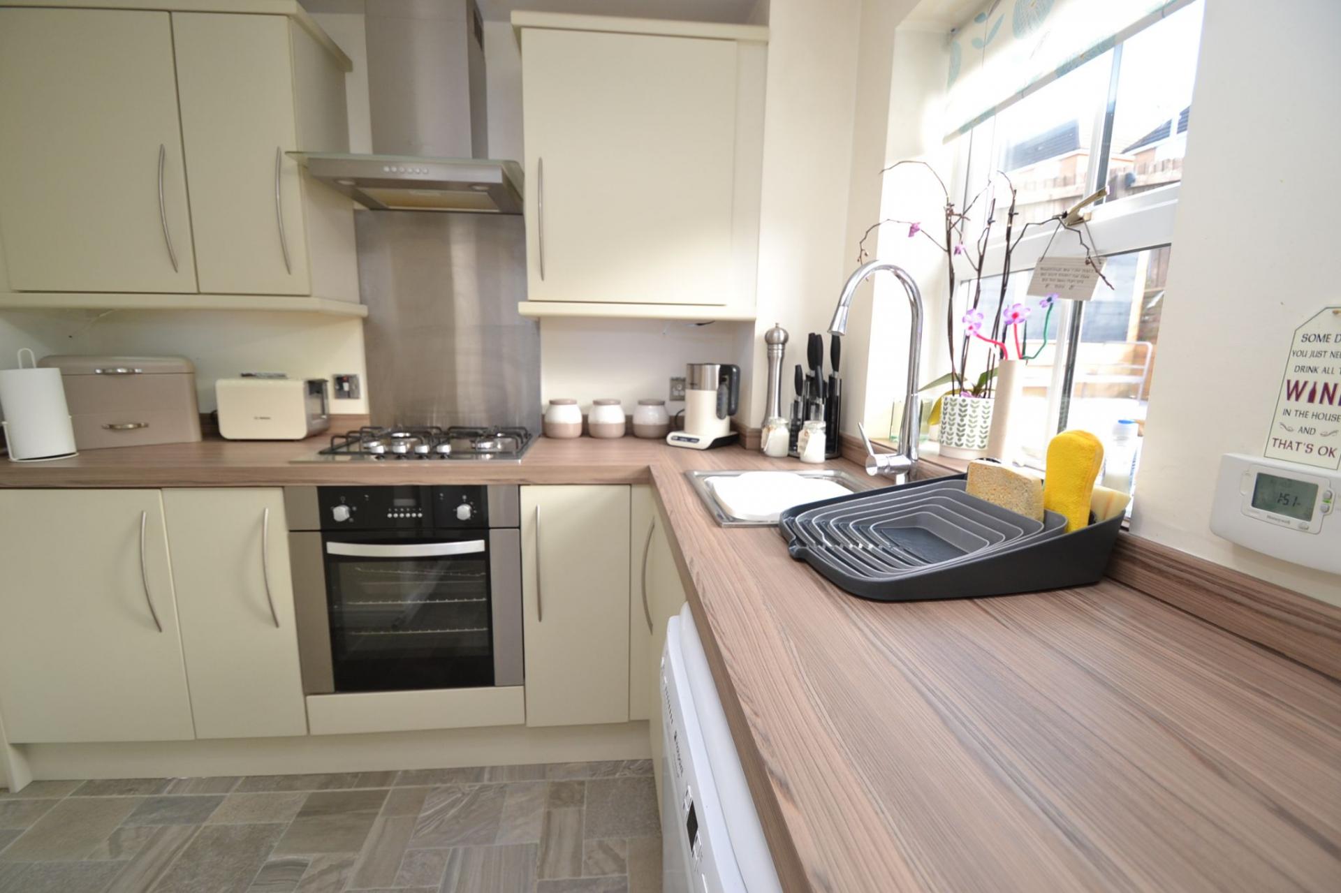 Kitchen: 3.4m x 2.1m (11'3 x 7'1). Range of modern wall & base units, work tops with matching splash backs, Upvc dg window and door to rear, stainless steel Hot Point extractor with stainless steel splash back, 4 ring gas hob and built in electric oven in stainless steel, plumbed for a dishwasher, radiator.