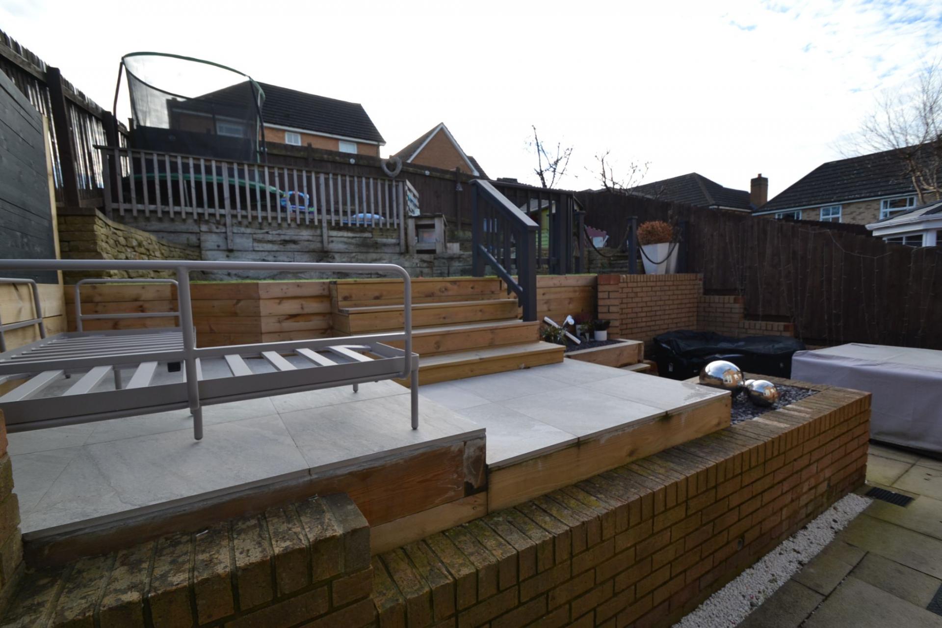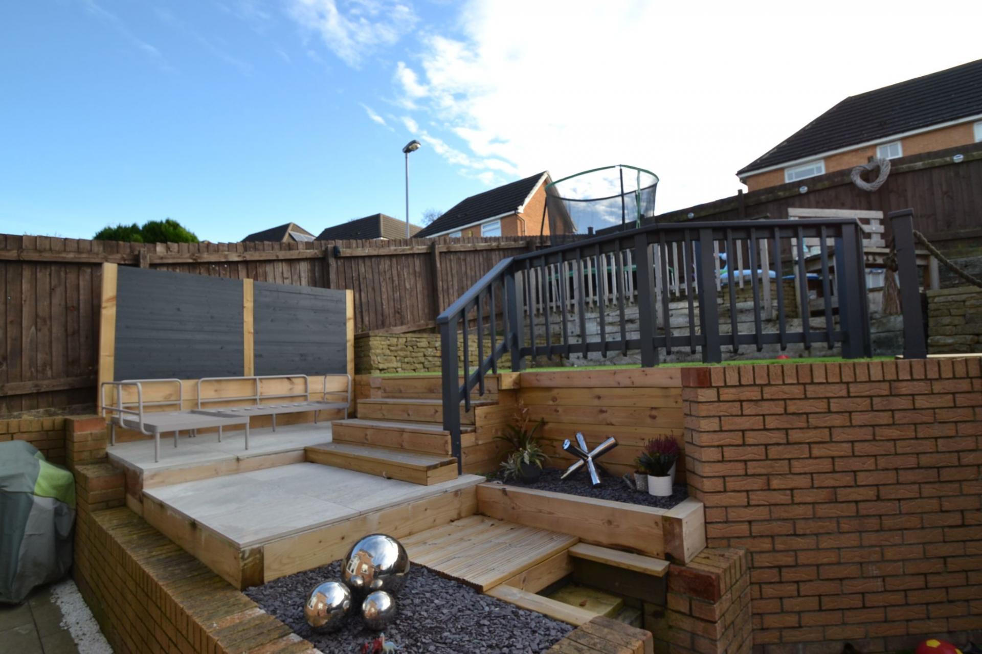 Externally: To the front is a lawned garden, tarmac drive, side pathway to a gated access onto the rear landscaped garden, flagged patio area, power point, water tap, sensor security lighting. Steps up to a decked and non slip porcelain part tiled decked area, additional artificial grassed area, plus a further raised garden area.
