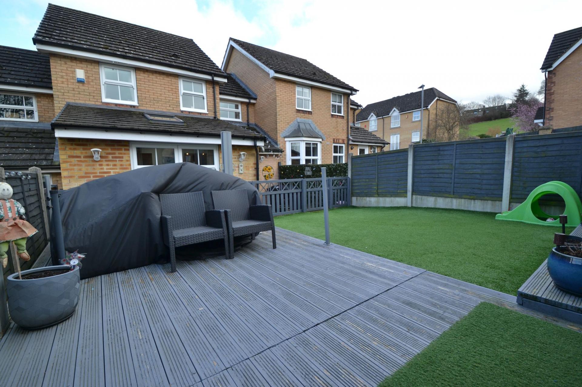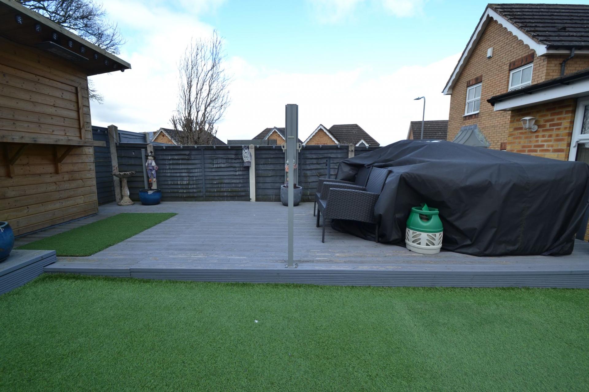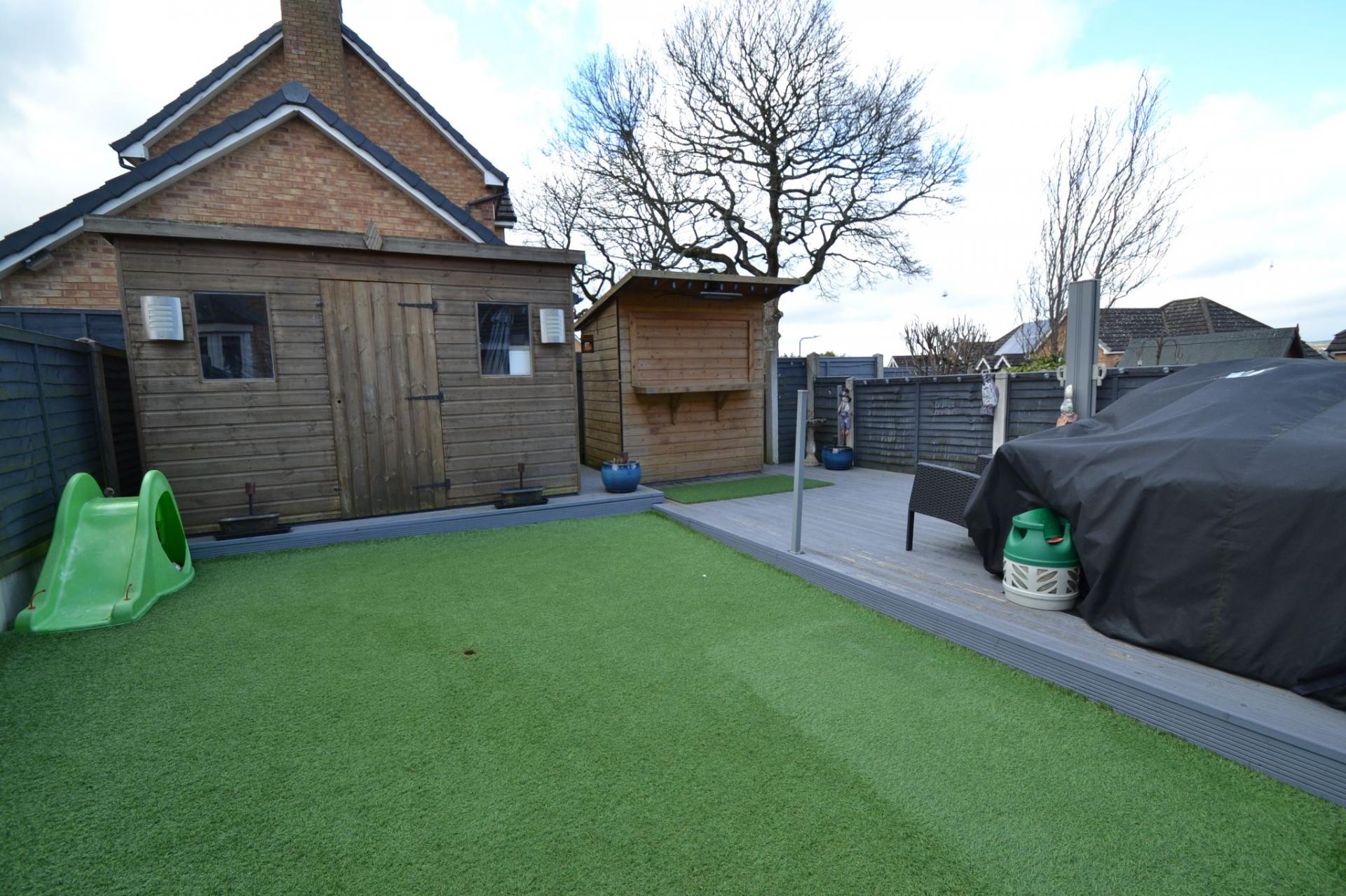 - ATTRACTIVE REAR GARDEN WITH A BAR AND GOOD SIZE MANCAVE SHED