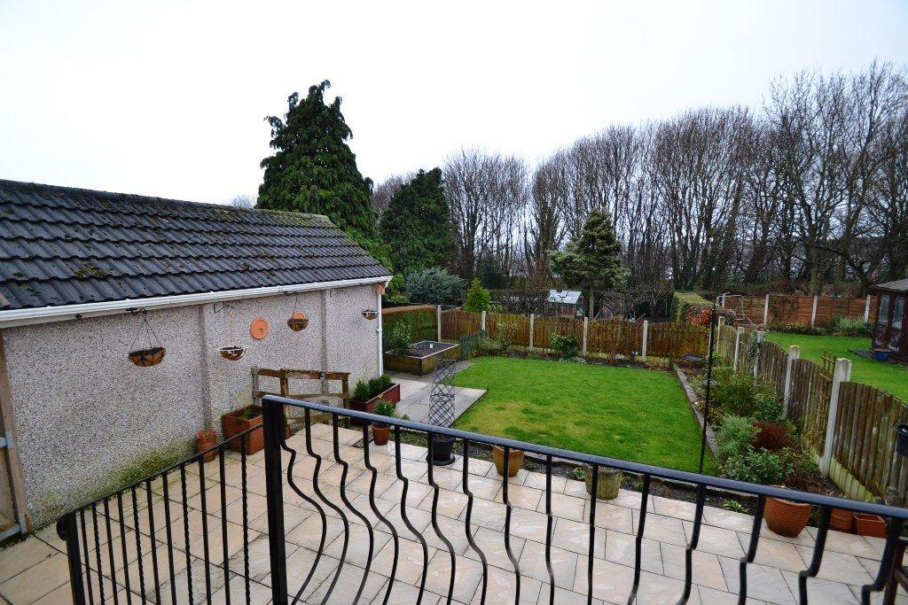 Externally: To the front is fencing, wrought iron gated access onto the tarmac drive, front garden with a lawn and borders, gravel area. The drive leads to the detached pitched roof garage with front doors, light & power, sensor security lighting. Gated access onto the rear flagged patio, raised flagged balcony with wrought iron railings, over looking the open aspect lawned garden with established borders.