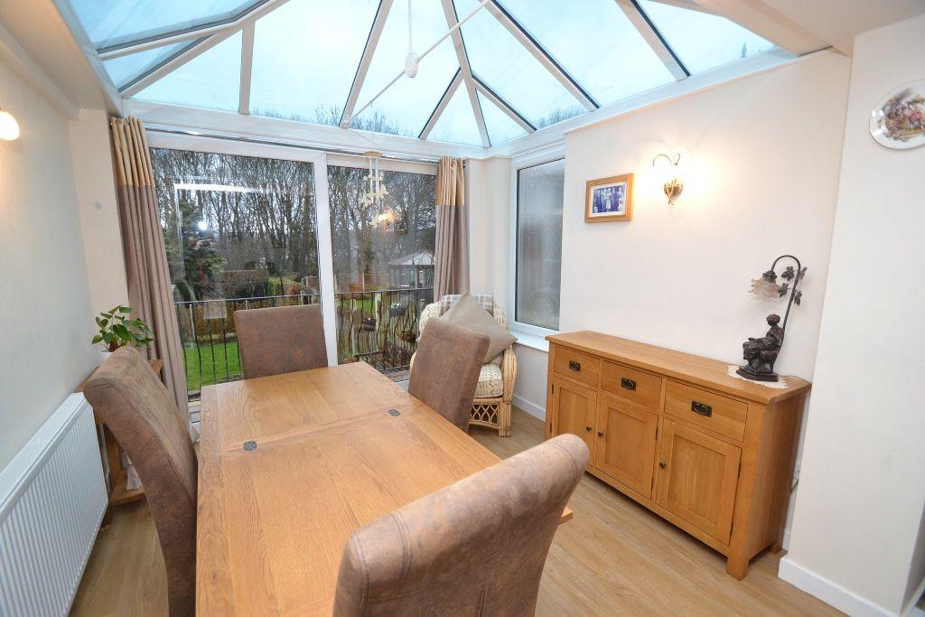Conservatory: 2.93m x 2.92m (9'7 x 9'6). Pitched construction with a glass roof, rear patio doors, laminate floor, ch radiator.
