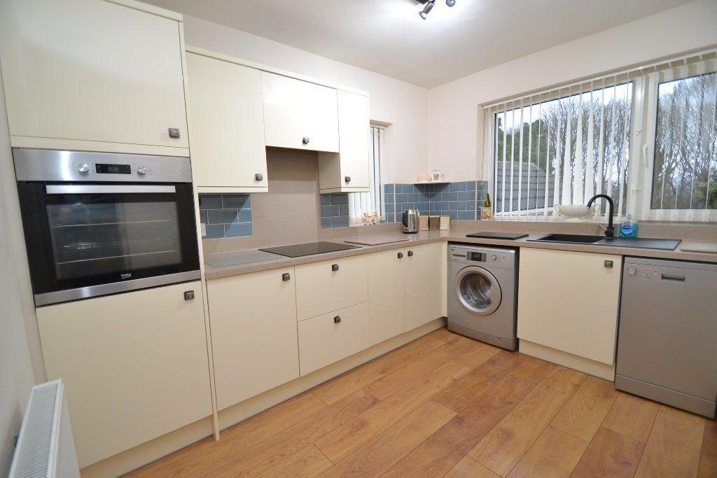 Kitchen: 3.28m x 2.97m (10'9 x 9'8). Excellent range of wall & base units in high gloss off white, work tops with matching splash backs and brick effect tiilng above, Upvc dg window to side & rear with fitted blinds, granite effect sink with a mixer tap, integrated fridge and freezer, plumbed for an auto-washer and dishwasher, built in electric oven, induction 4 ring hob with an extractor and light over, laminate flooring, ch radiator.