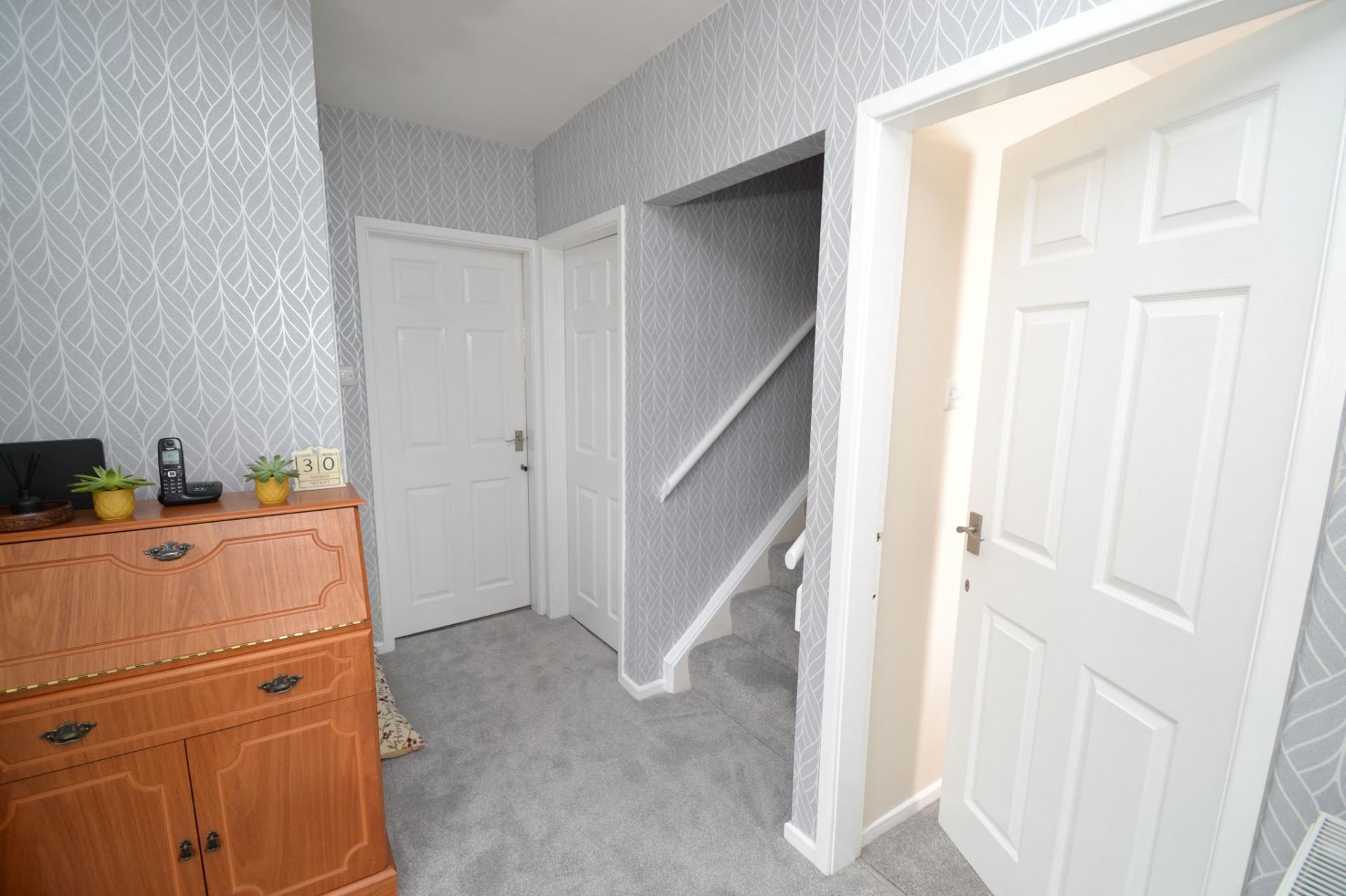 Side Entrance: Upvc door into the hallway, stairs, radiator, cupboard houses the alarm and the Ideal Logic Heat 18 Condensing boiler.