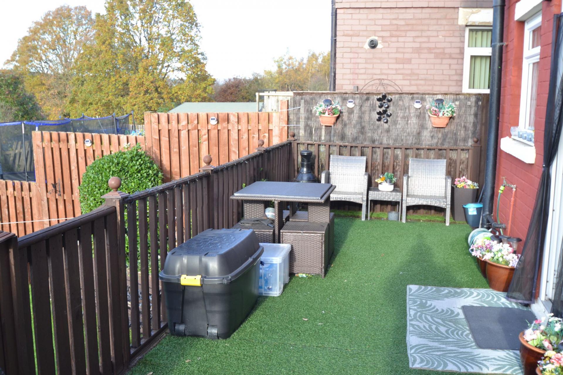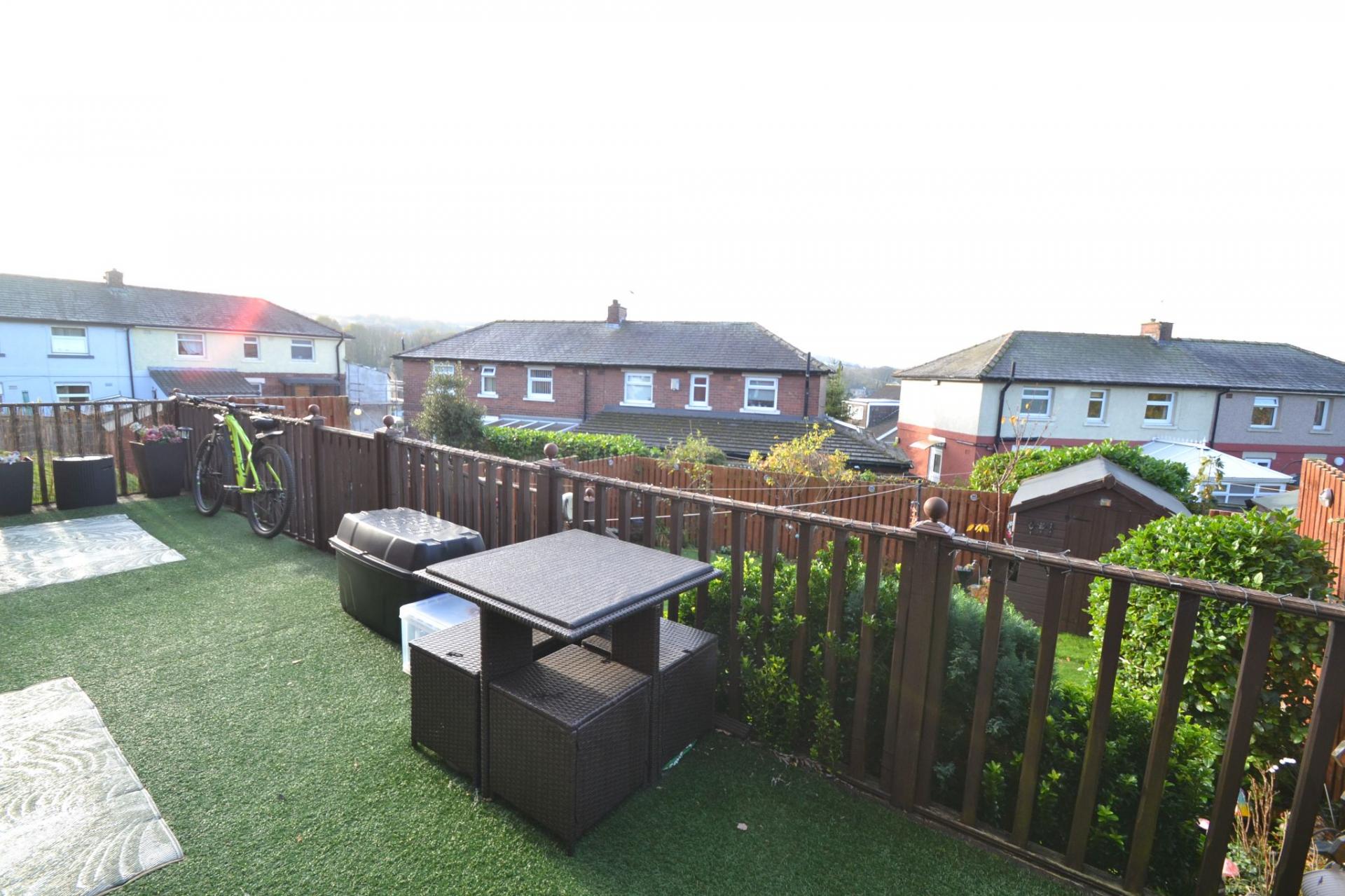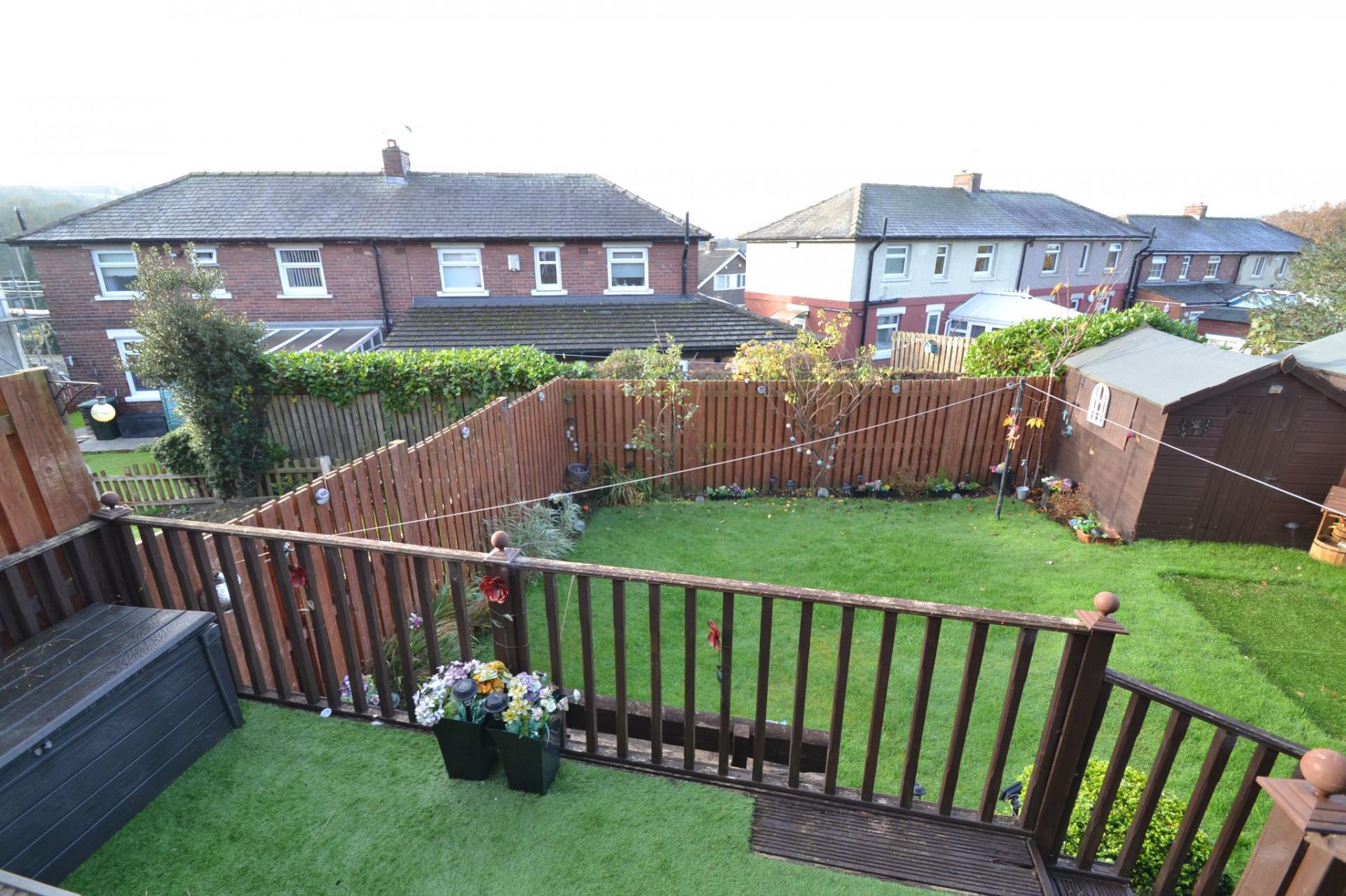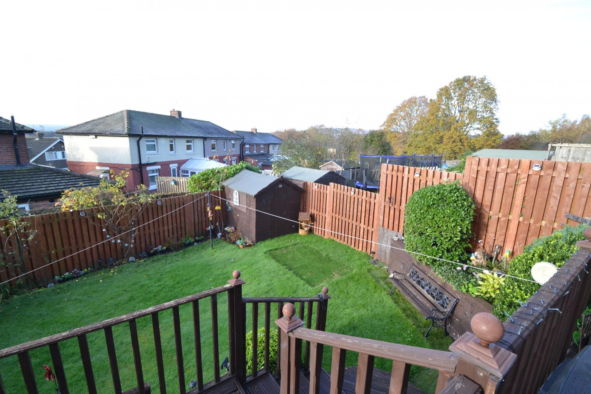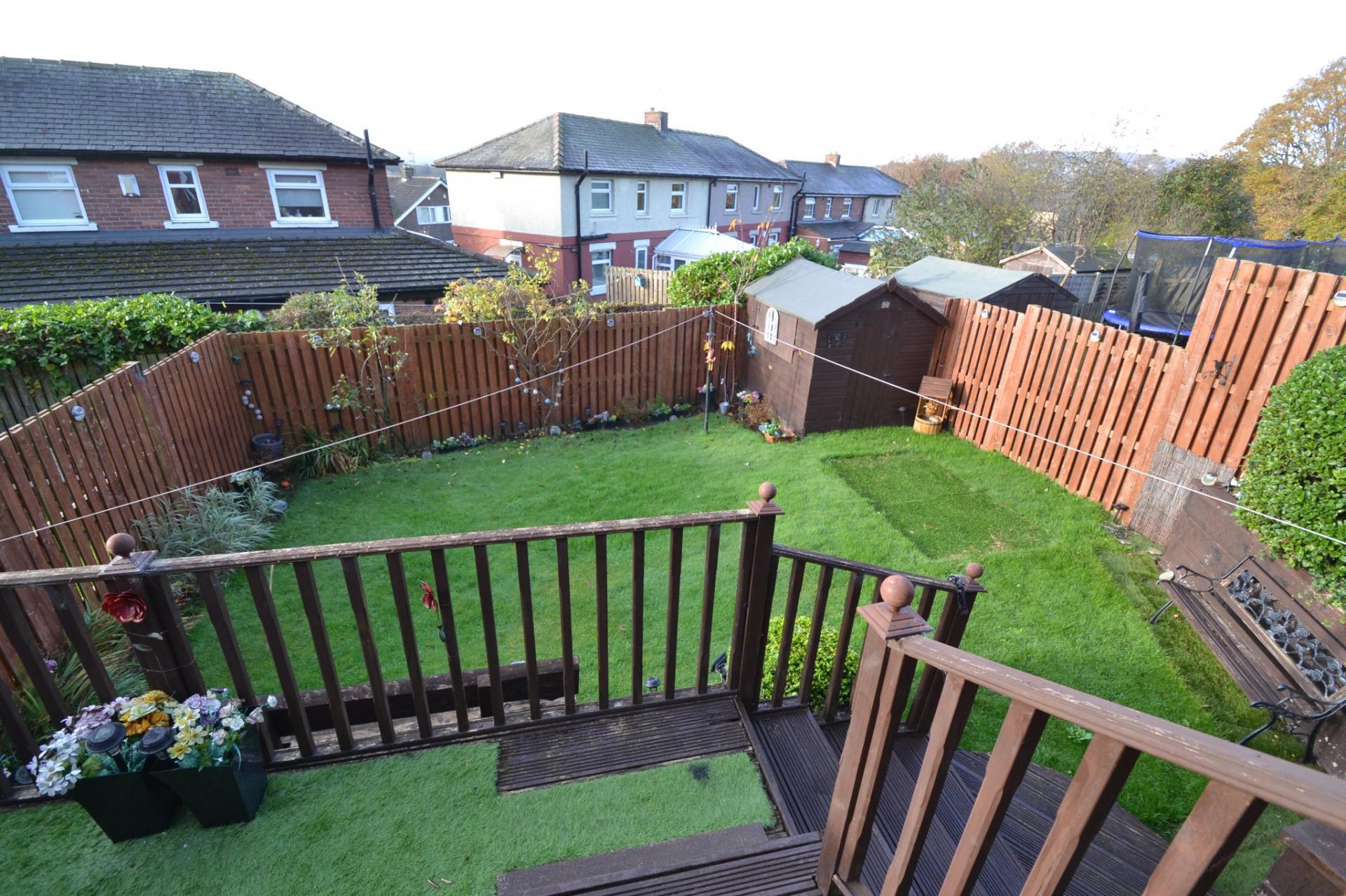 - REAR DECKED PATIO AND TIERED DOWN TO A LAWNED GARDEN PLUS A GARDEN SHED