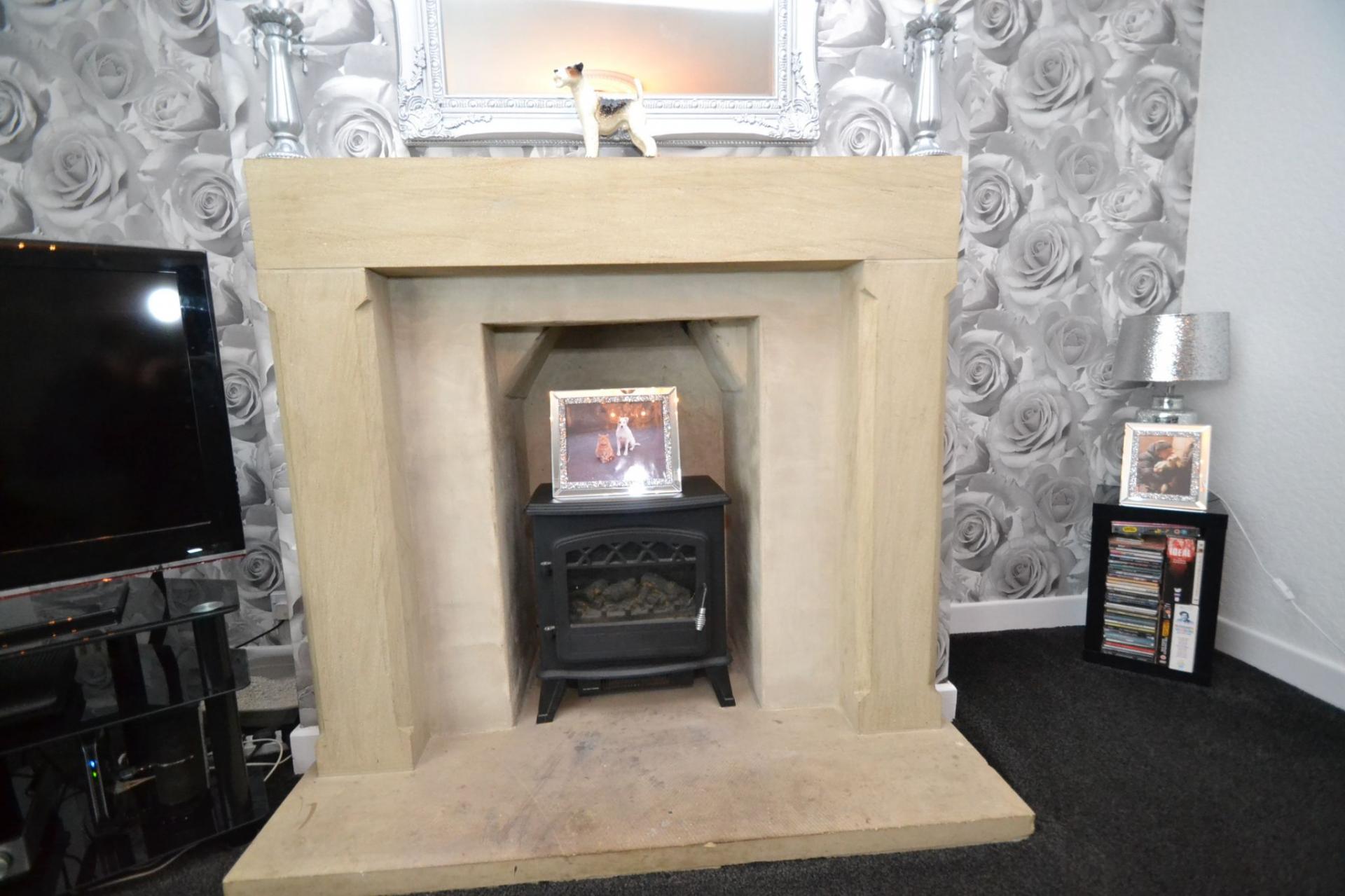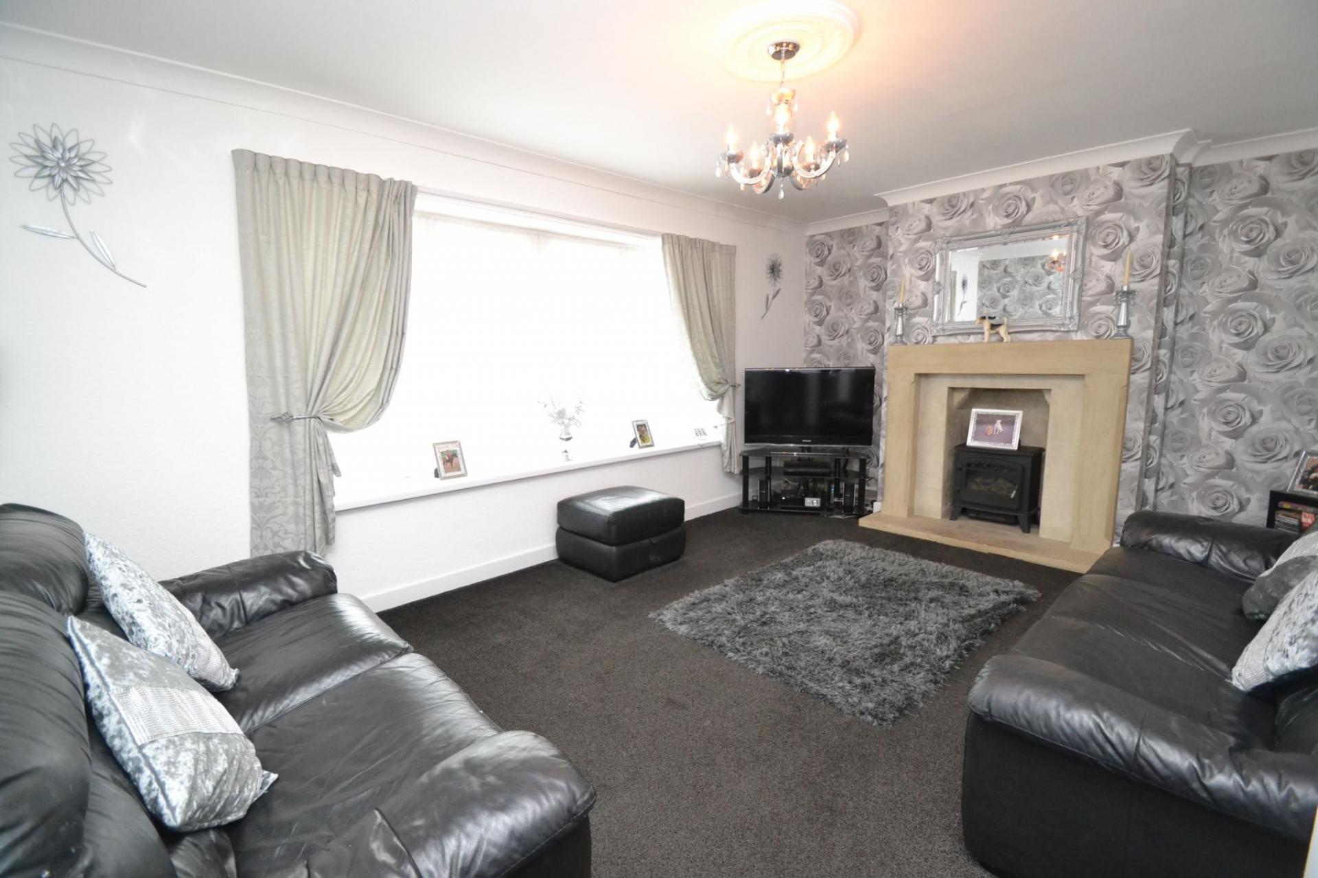 Lounge: Upvc dg window to front, impressive stone fireplace feature with space for a wood burning stove, radiator, coving.