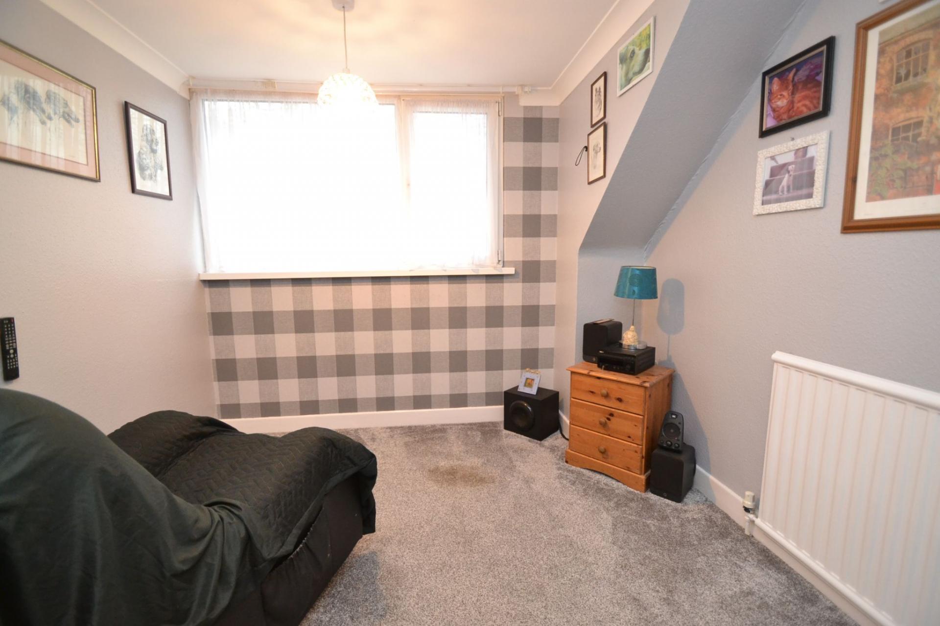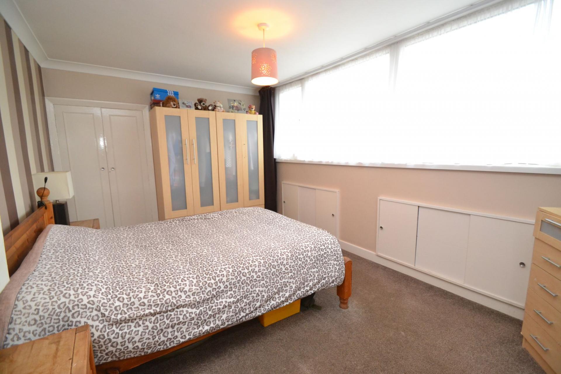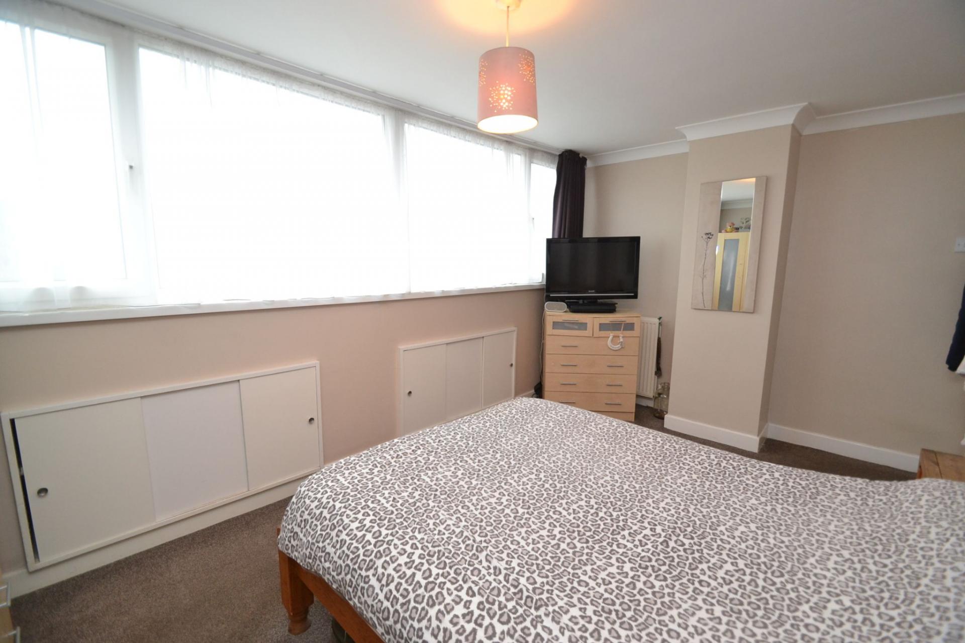 Bedroom 1: Front elevation Upvc dg dormer, under drawing storage, radiator, coving, built in cupboard storage.