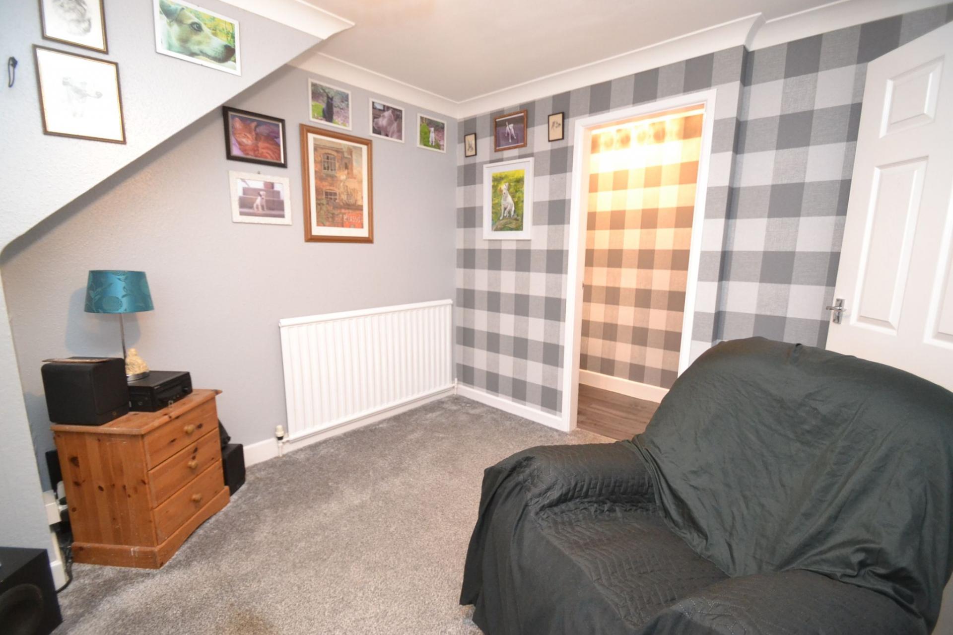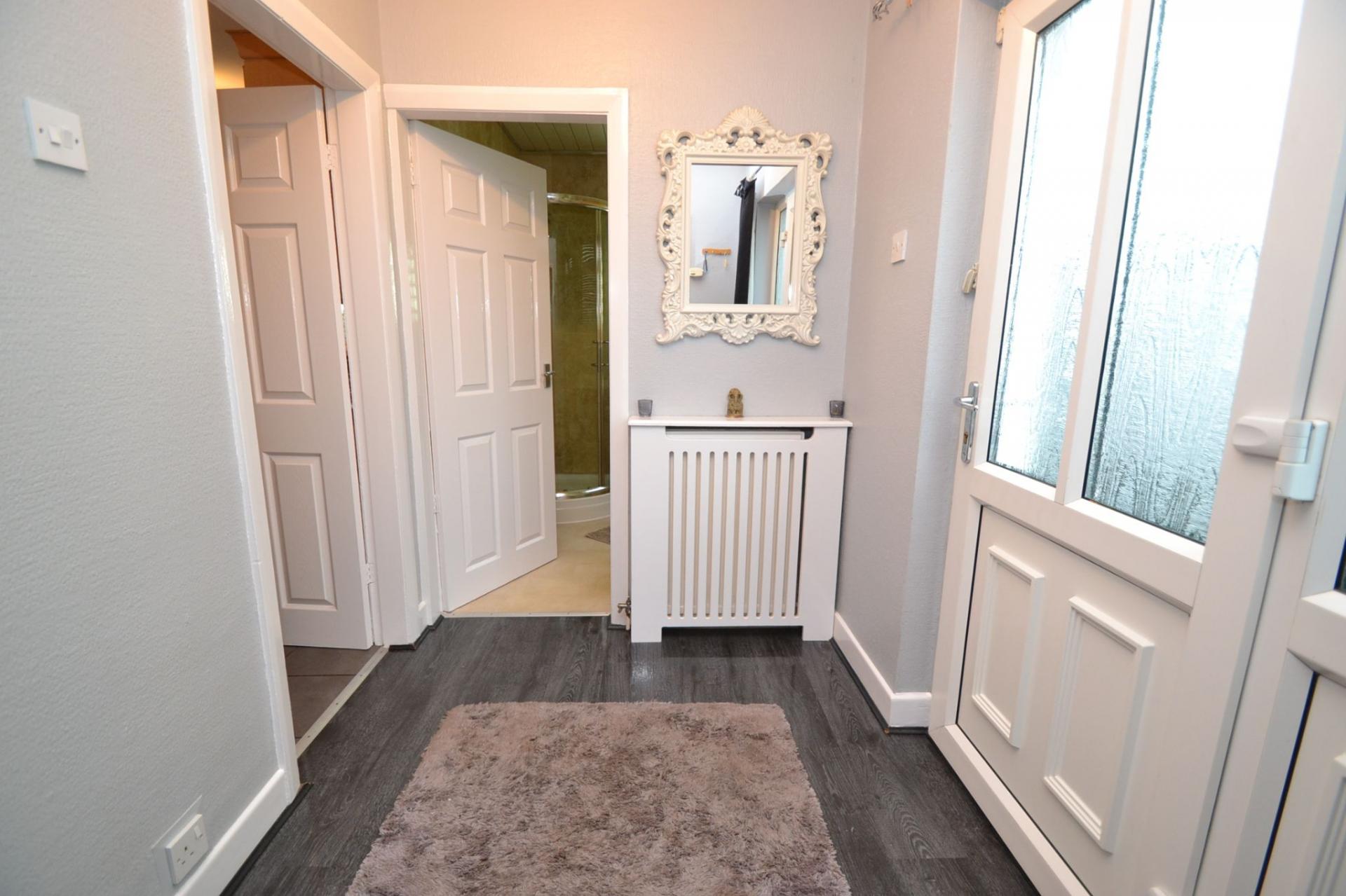 Side Entrance: Upvc door into the hall, radiator, coving, quality laminate floor, thermostat control.