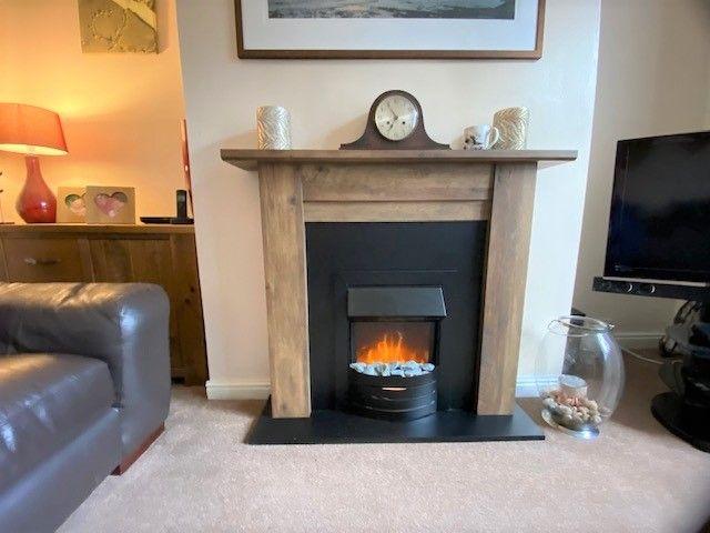 Lounge: Upvc dg window to front, radiator, feature oak fireplace surround with an electric living flame fire.