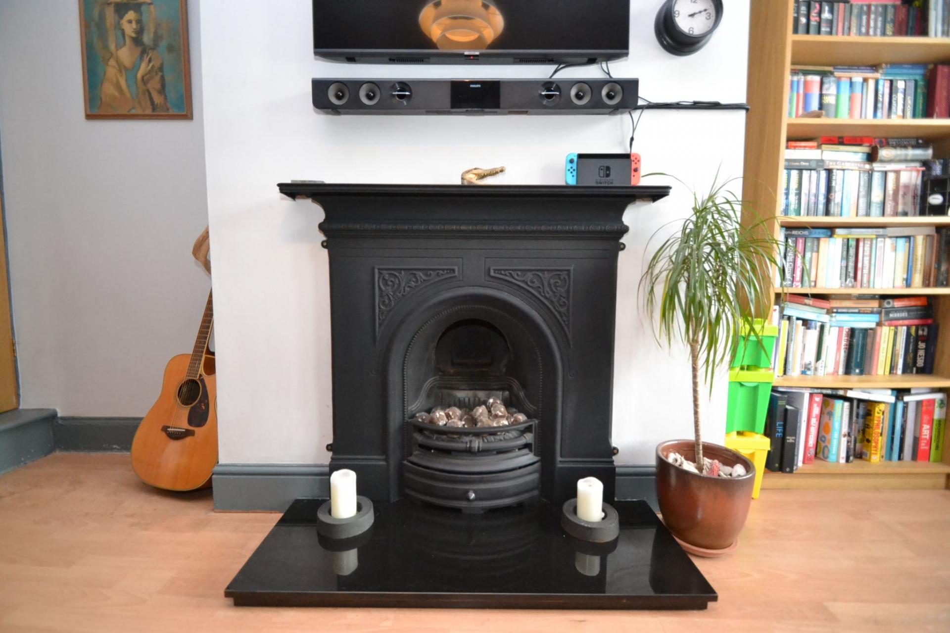 GROUND FLOOR: LIVING ROOM 16’9’ x 11’11’ (5.11m x 3.63m). Front Upvc door, cast iron fireplace with a living flame coal effect gas fire and a marble hearth. The living room is spacious with a front facing Upvc dg bay window and fitted blinds, radiator, laminate floor, wired for a flat TV. This room is packed with character features such as the lovely and rare curved walls surrounding the bay, original coving and high skirting boards.