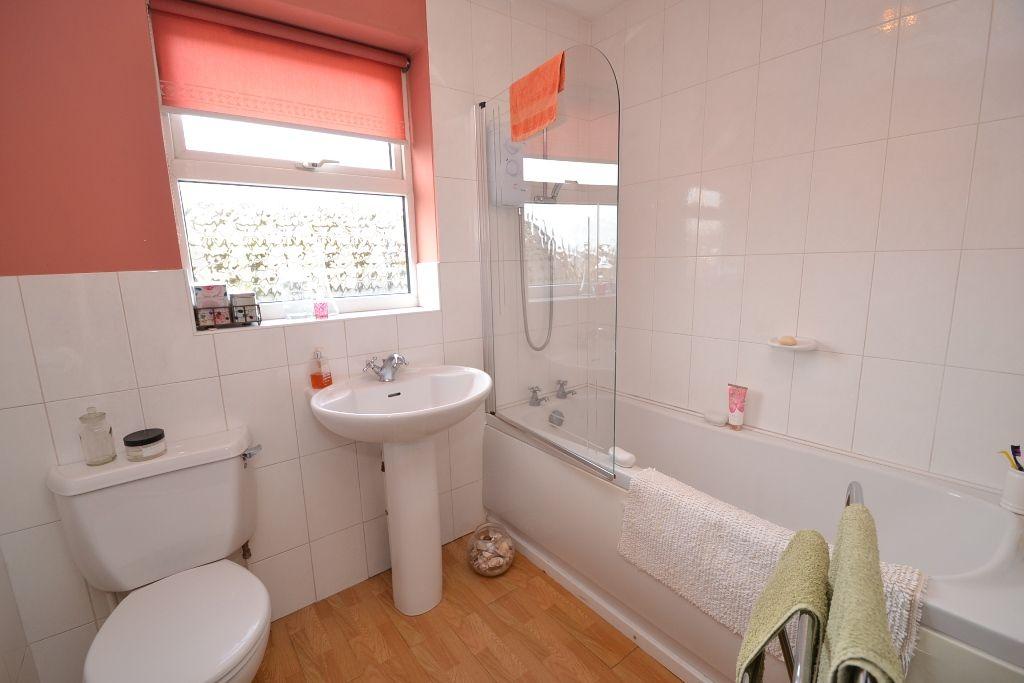Family Bathroom: 2.24m x 1.84m (7'4 x 6'0). Three piece suite in white with an electric Triton shower over the bath and a shower screen, frosted Upvc dg window, ch radiator.