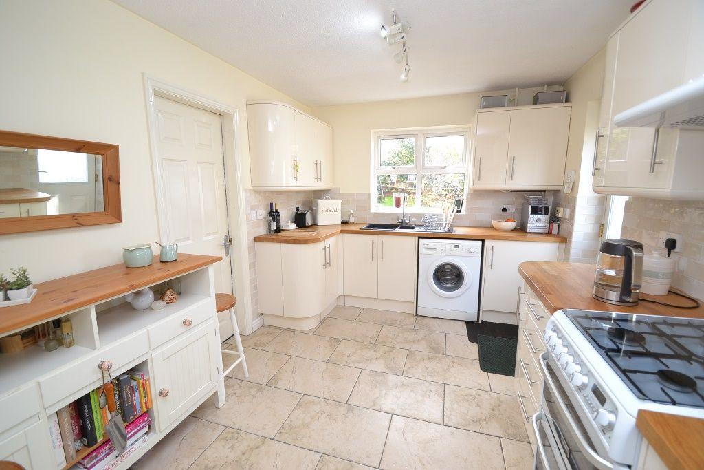 Kitchen: 4.68m x 2.78m (15'4 x 9'1). Extensive range of wall & base units in vintage cream with stainless steel handles, solid wood butcher work tops with brick effect tiling above, extractor over a built in cooker with 4 ring gas hob and fan assist electric oven, space for a tall boy fridge freezer which is to remain, plumbed for an auto-washer also to remain, granite effect 1.5 sink with chrome mixer tap, Upvc dg window to rear, tiled floor, ch radiator, Ideal ch boiler in wall unit, side entrance door.
