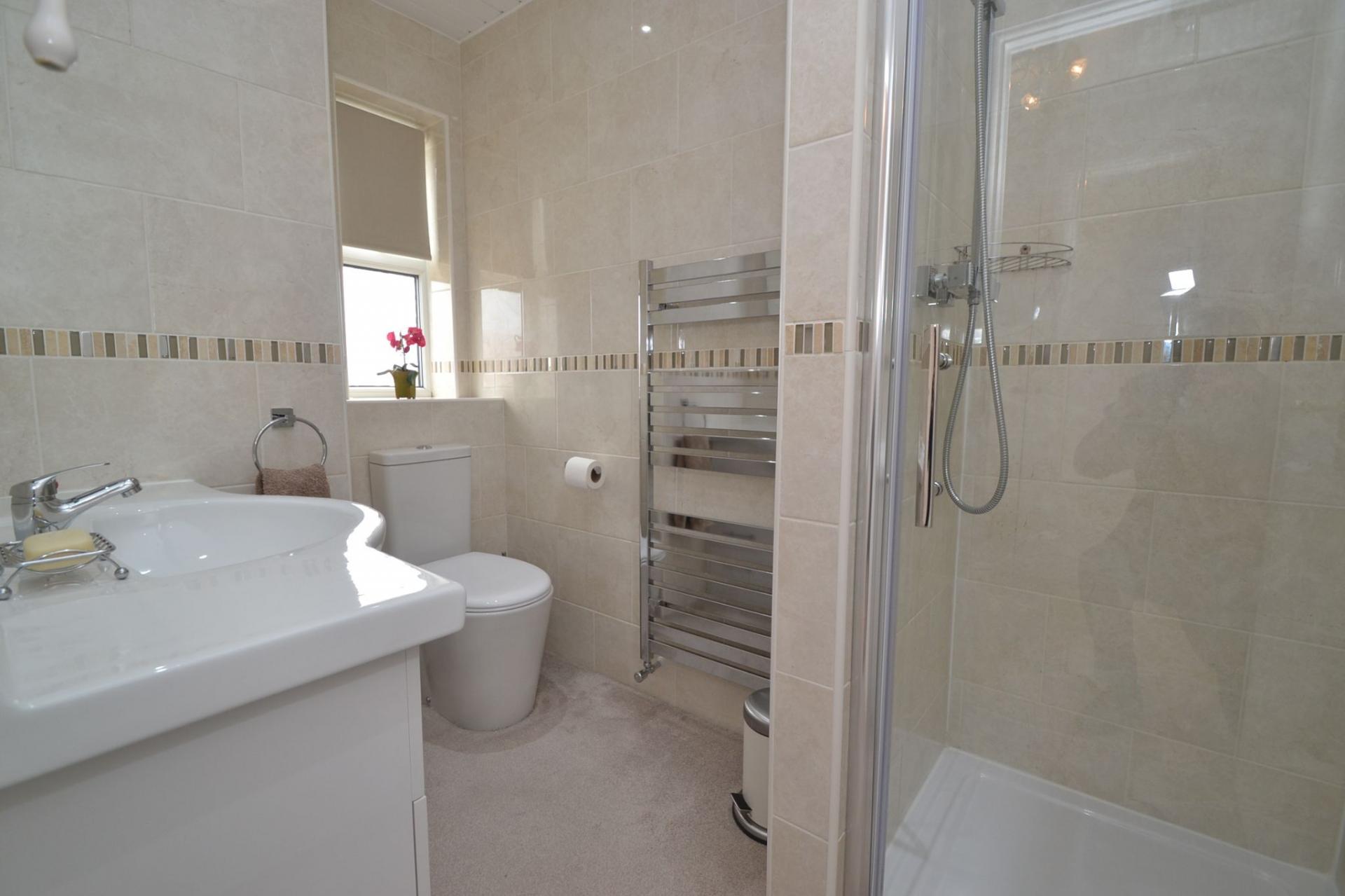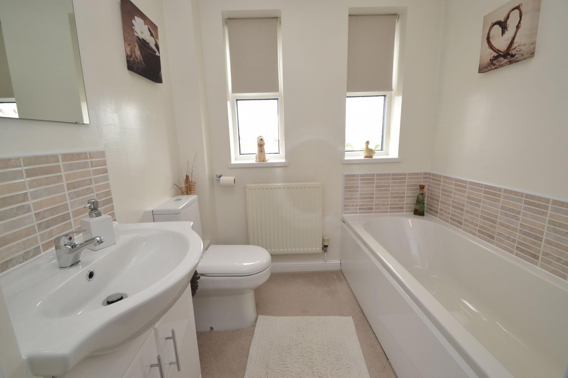 Family Bathroom: 2.56m x 1.92m (8'3 x 6'2). Three piece suite in white, chrome fittings, shower mixer tap, wash basin set on a vanity unit, two Upvc dg frosted windows, radiator, extractor, coving, electric shaving point.